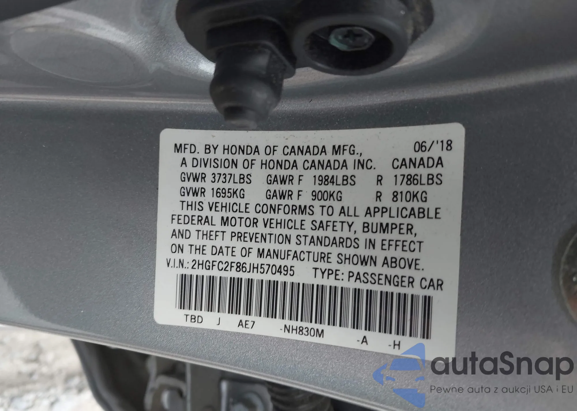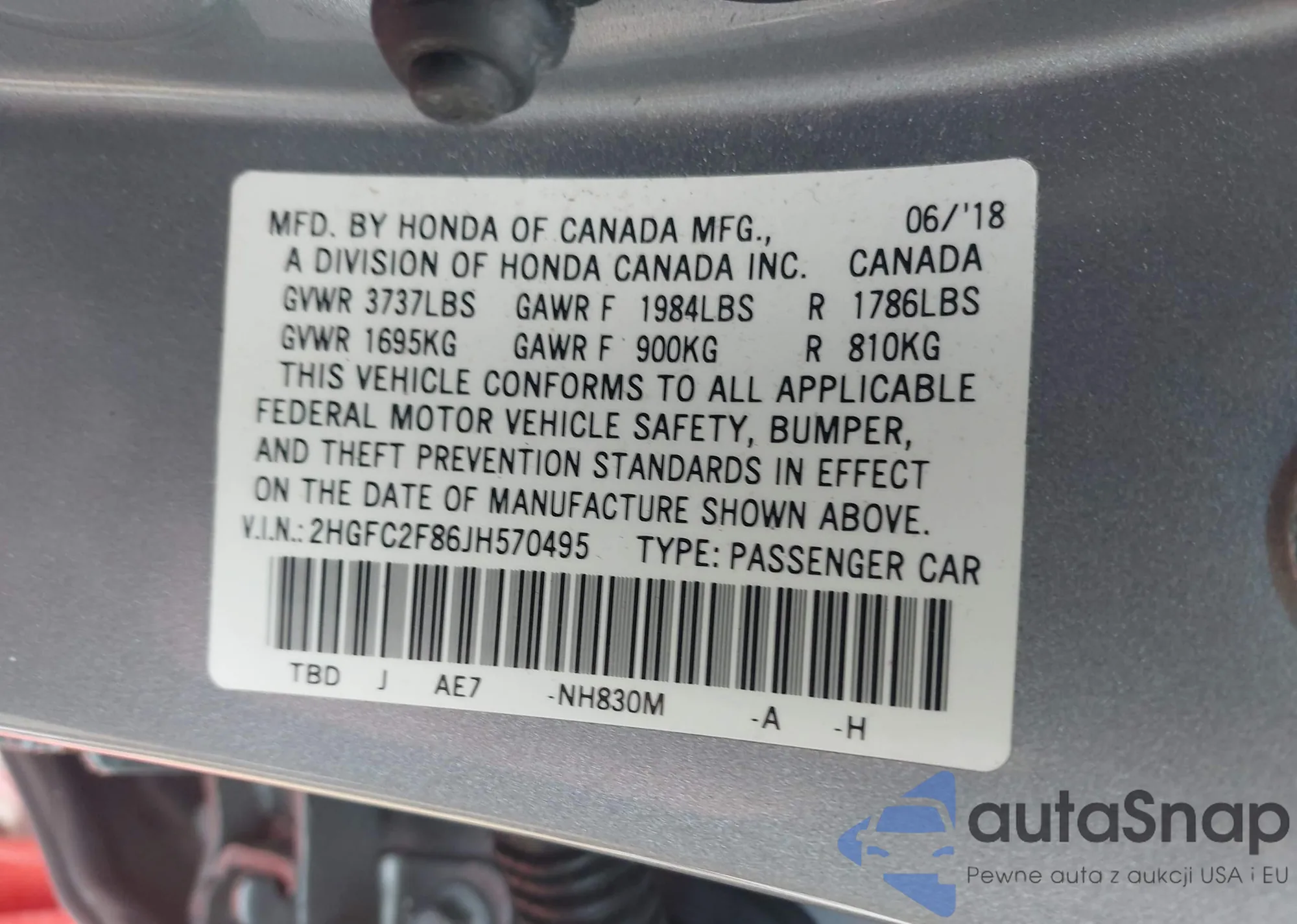 • VIN 2HGFC2F86JH570495