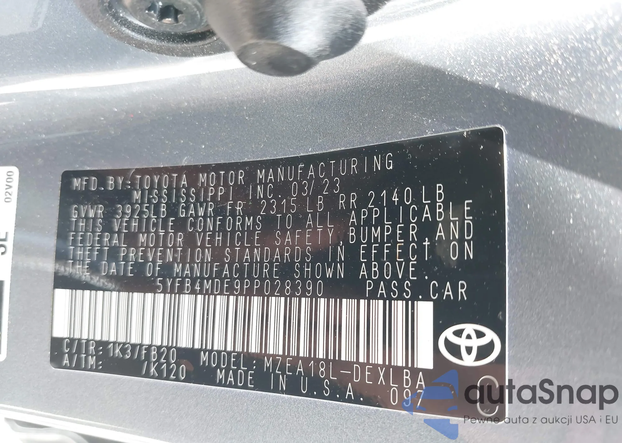 • VIN 5YFB4MDE9PP028390
