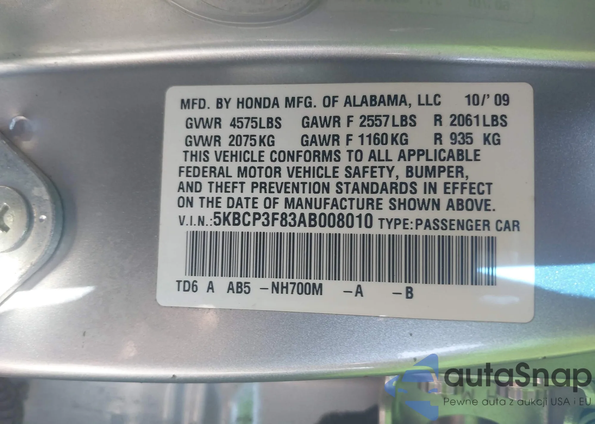 • VIN 5KBCP3F83AB008010