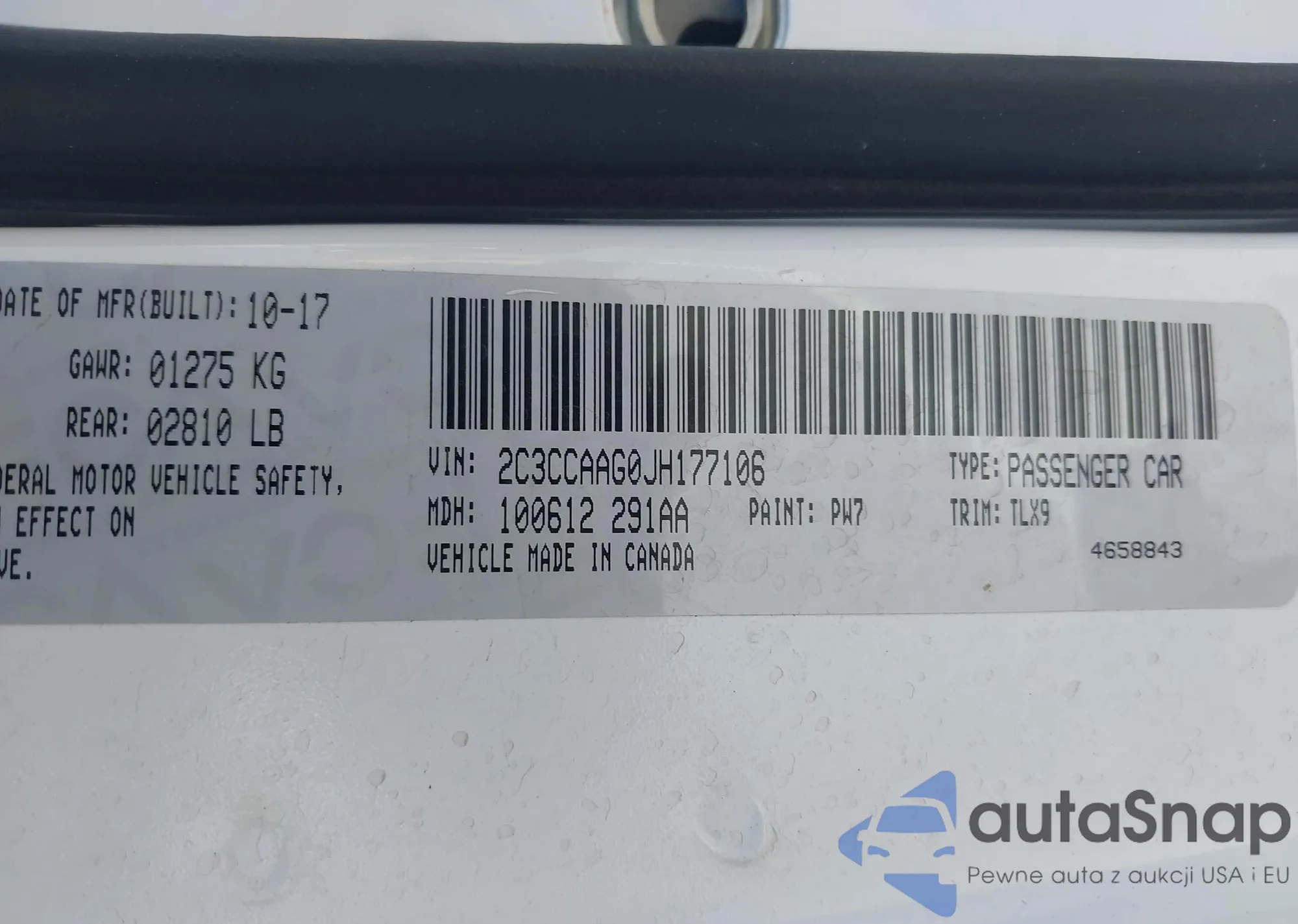 • VIN 2C3CCAAG0JH177106
