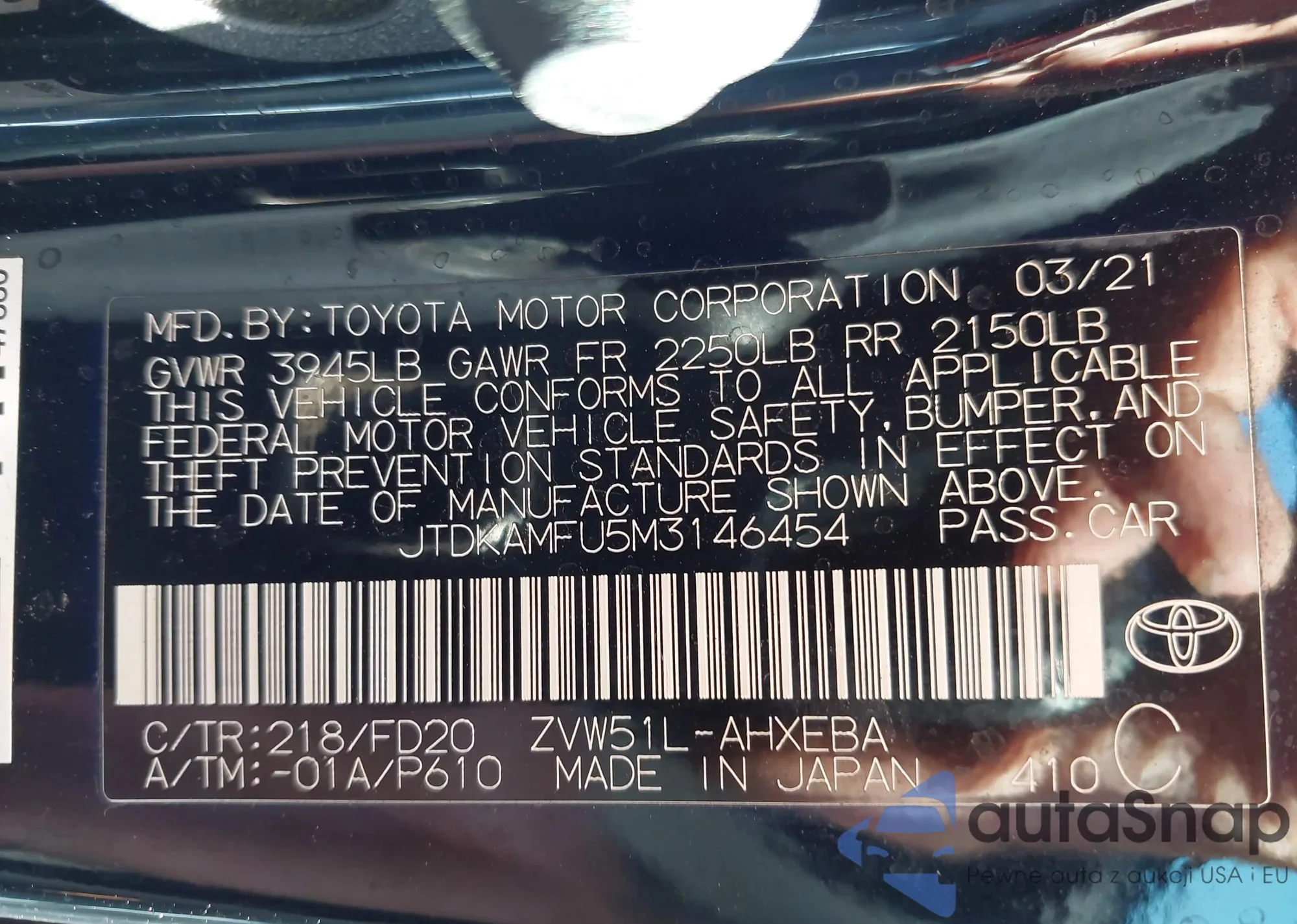 • VIN JTDKAMFU5M3146454