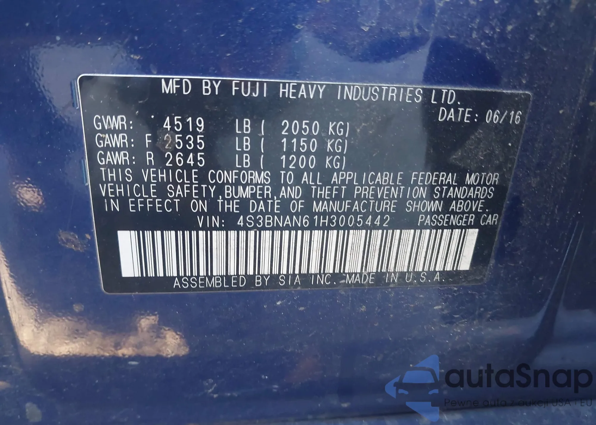 LOT: 43466712 VIN: 4S3BNAN61H3005442