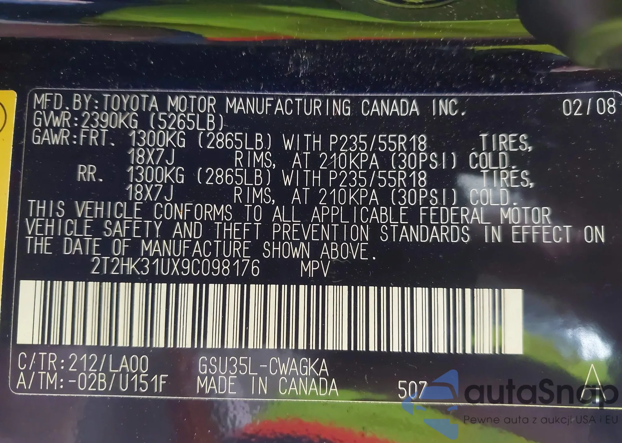 LOT: 43462876 VIN: JTDKAMFU5M3146454