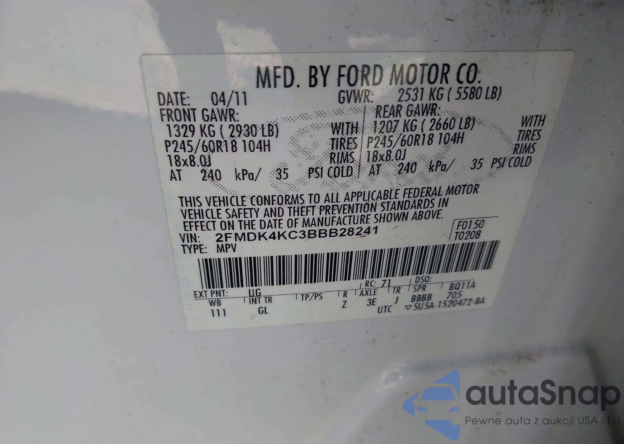 • VIN 2FMDK4KC3BBB28241