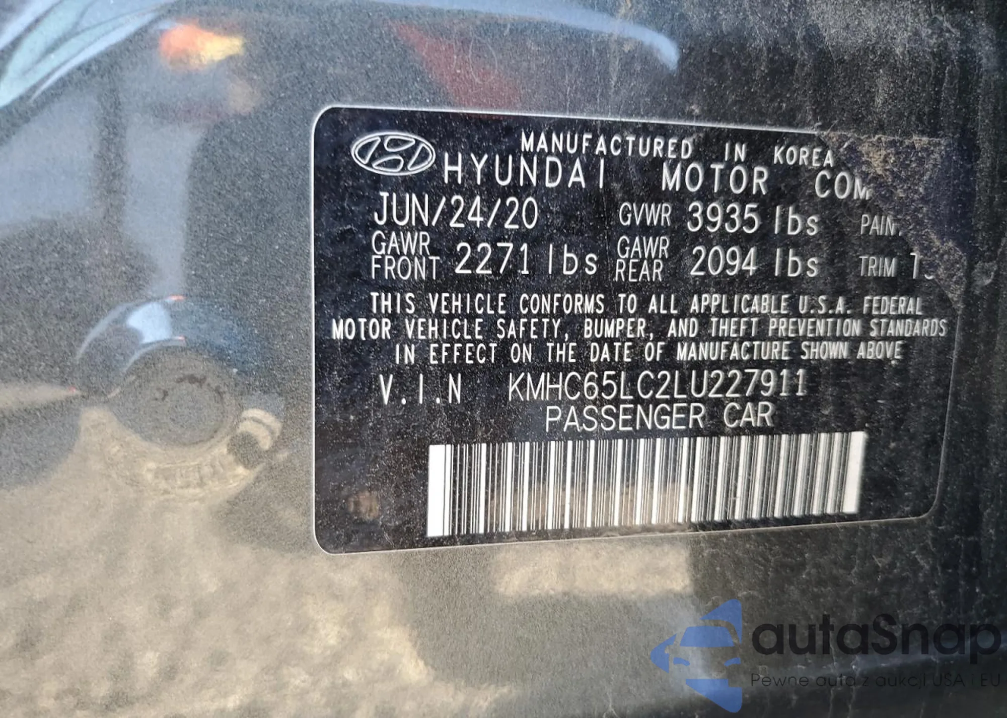 LOT: 82355845 VIN: KMHC65LC2LU227911