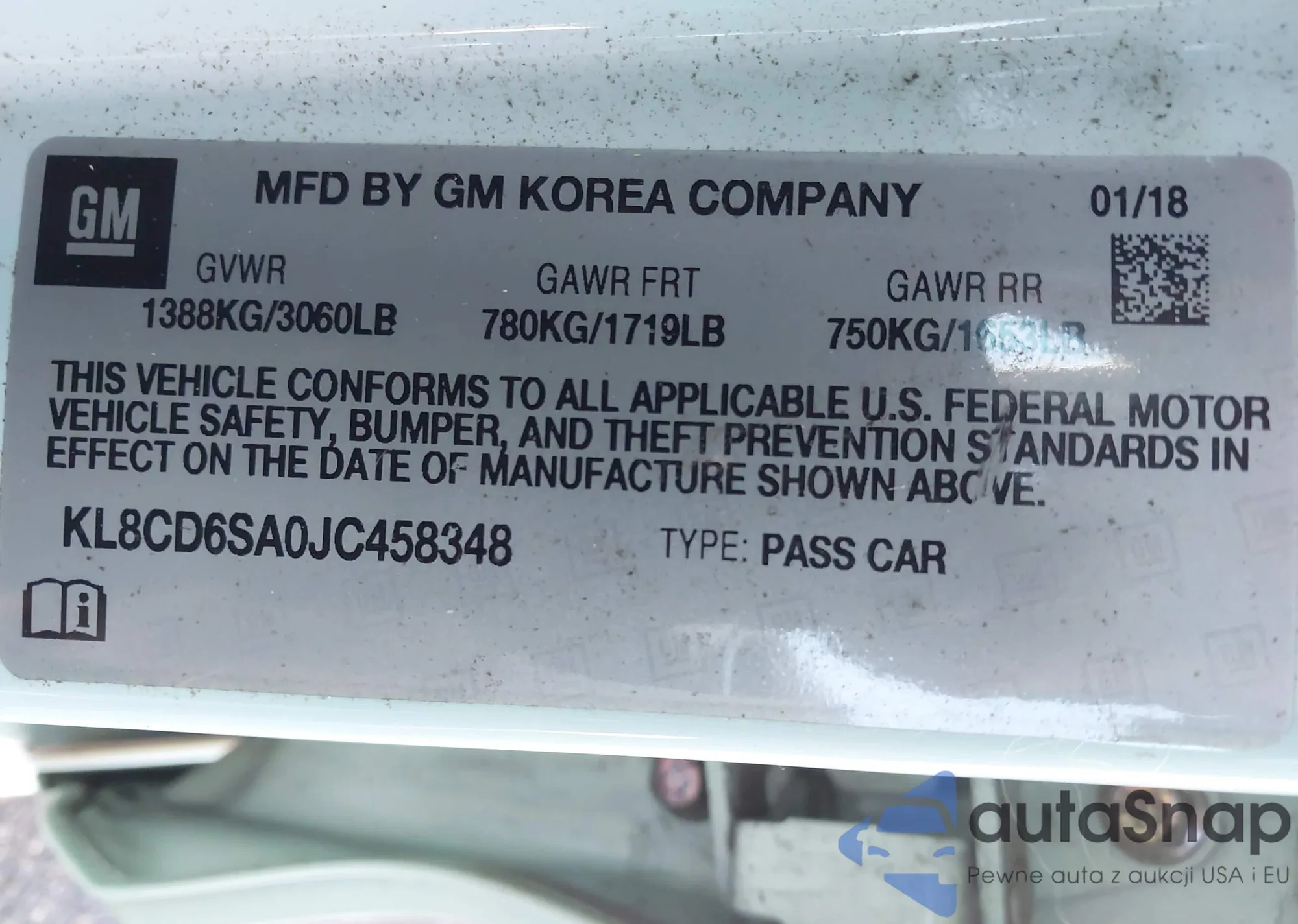 LOT: 43702793 VIN: KL8CD6SA0JC458348