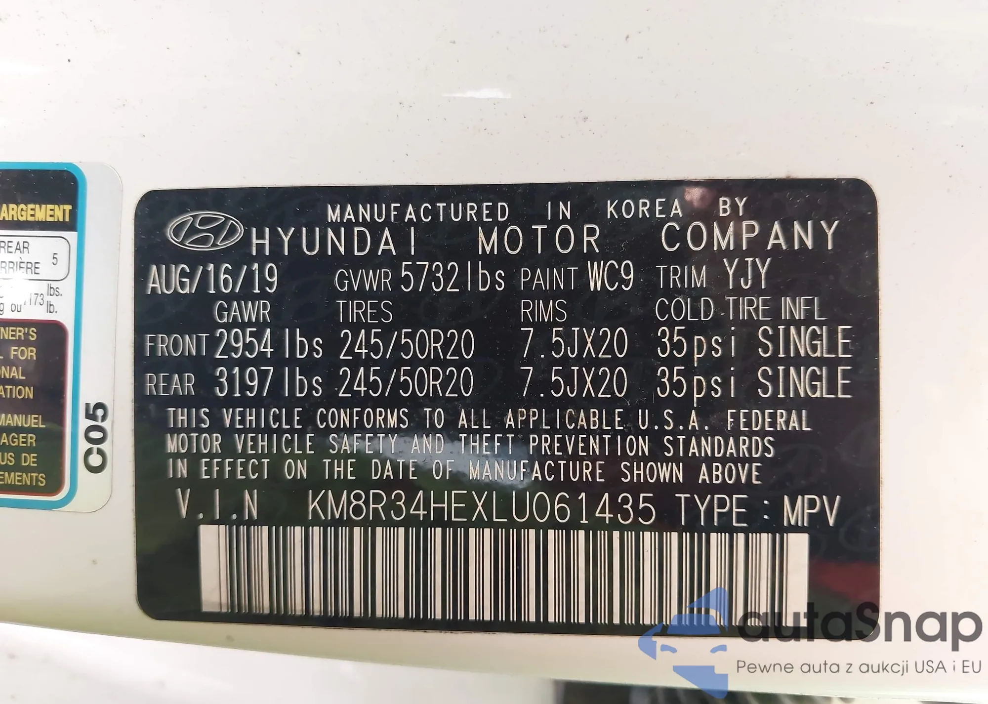 LOT: 43709523 VIN: KM8R34HEXLU061435