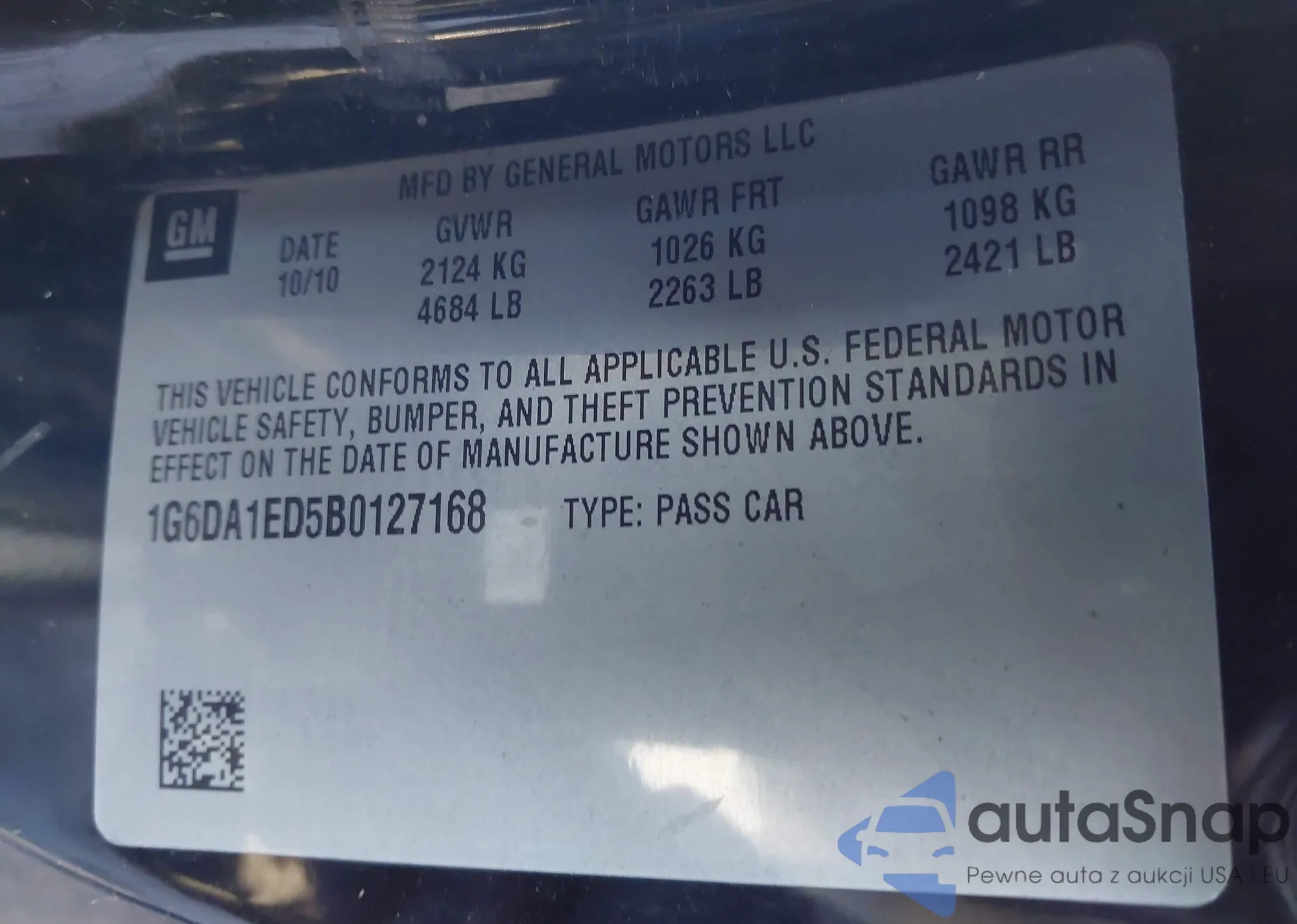 • VIN 1G6DA1ED5B0127168