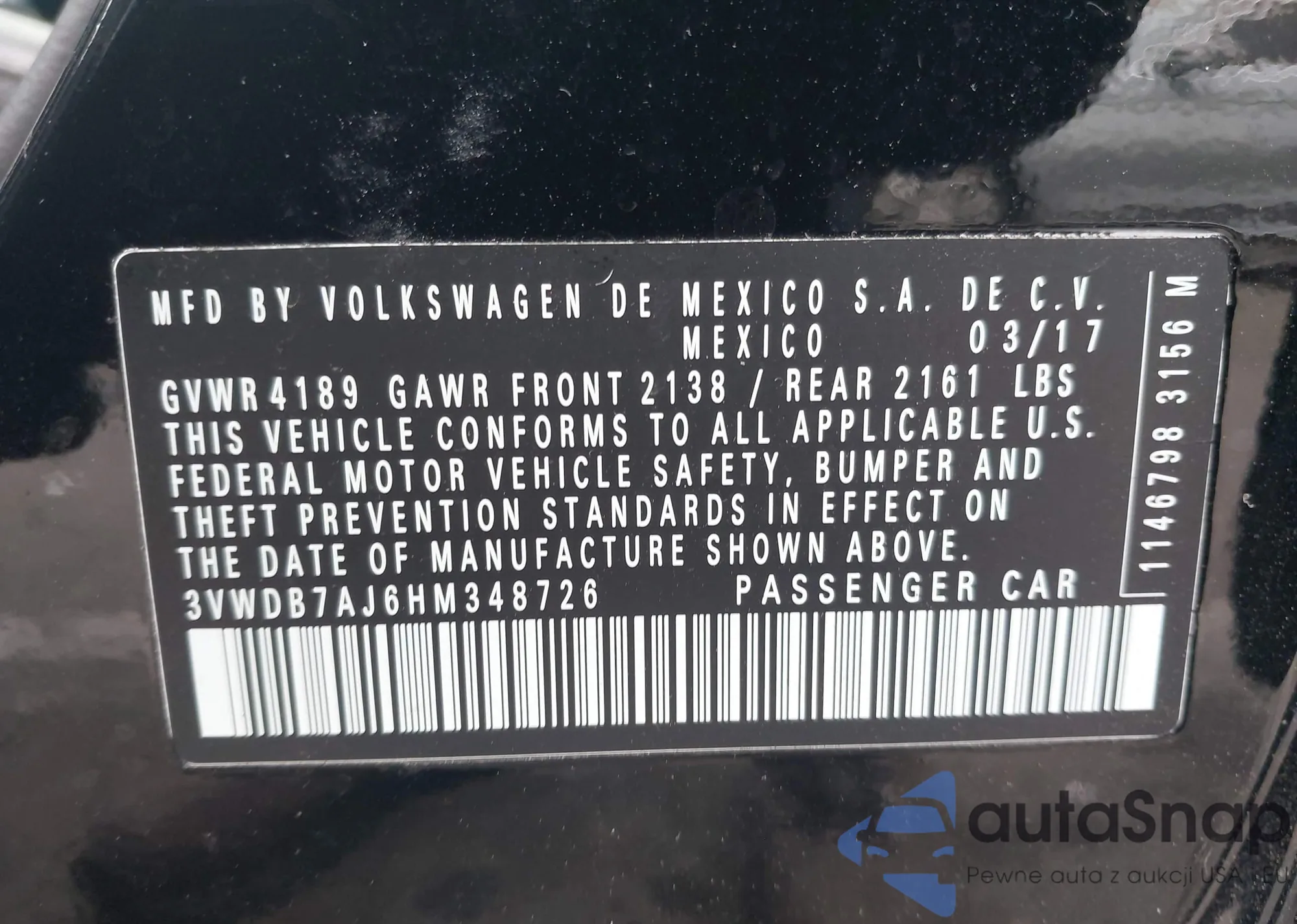 • VIN 3VWDB7AJ6HM348726