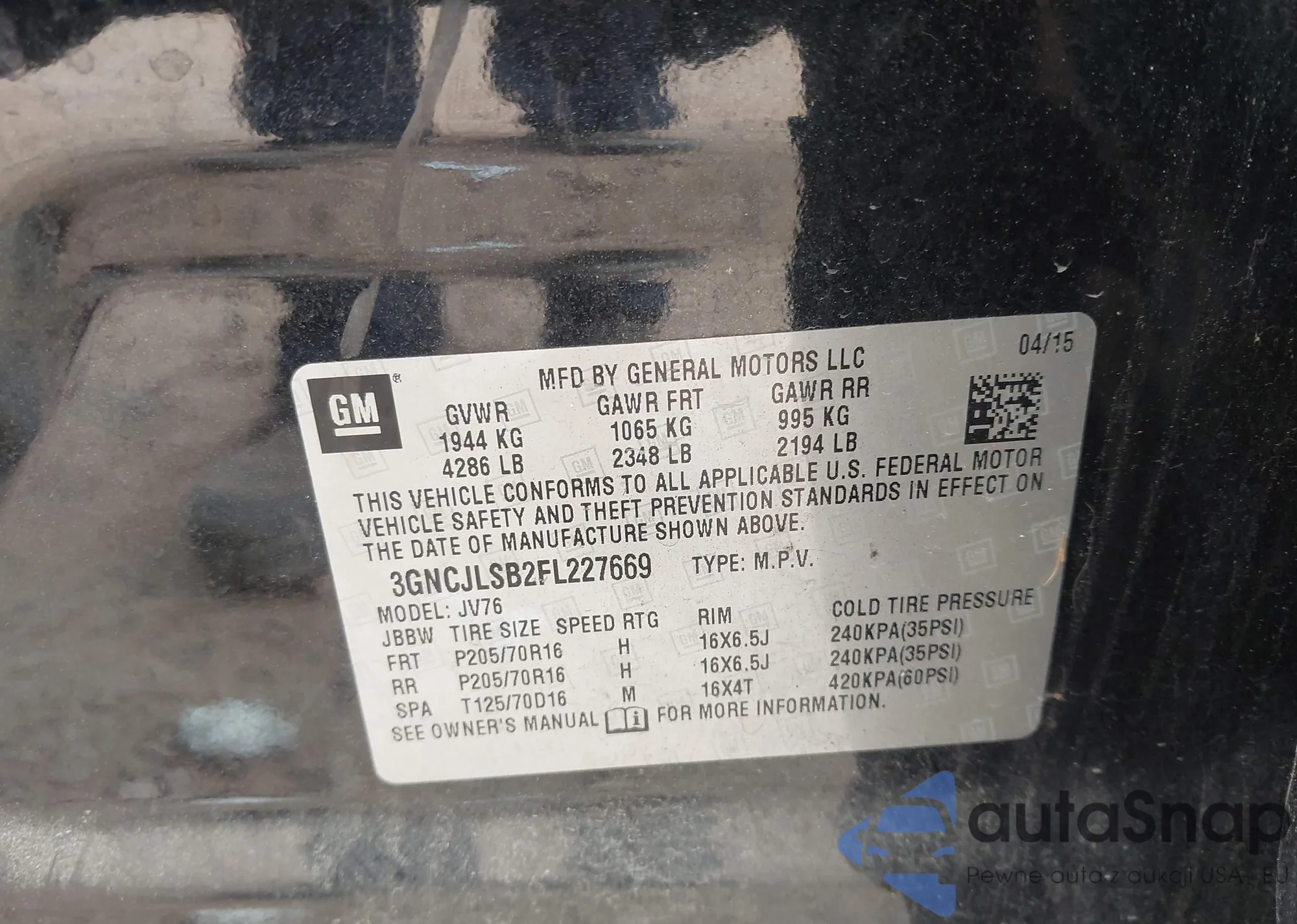 LOT: 43600808 VIN: 1C4PJMAK3CW181793