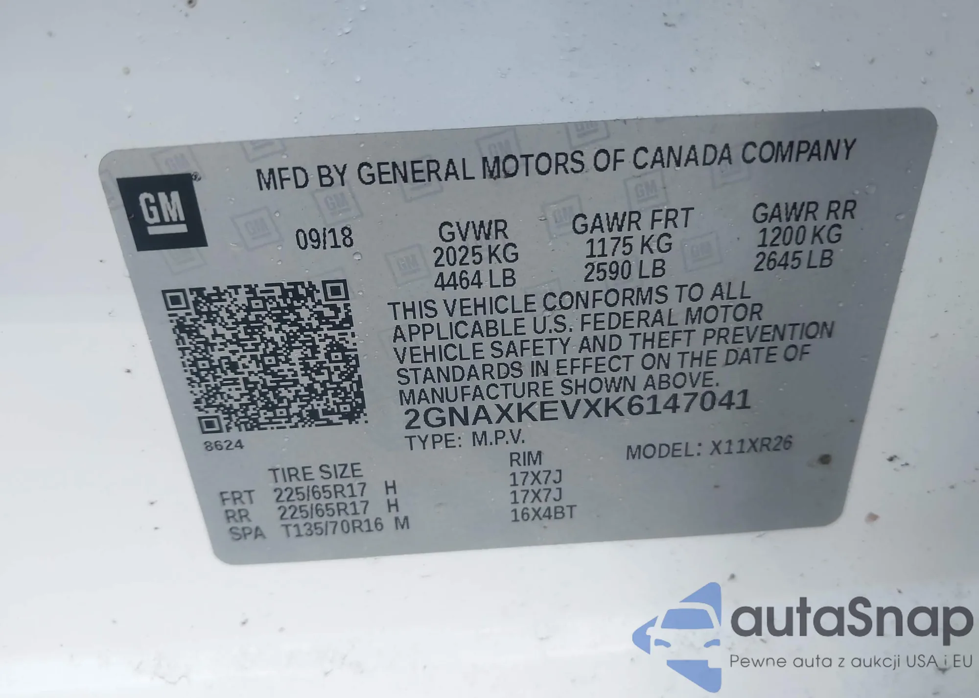 • VIN 2GNAXKEVXK6147041