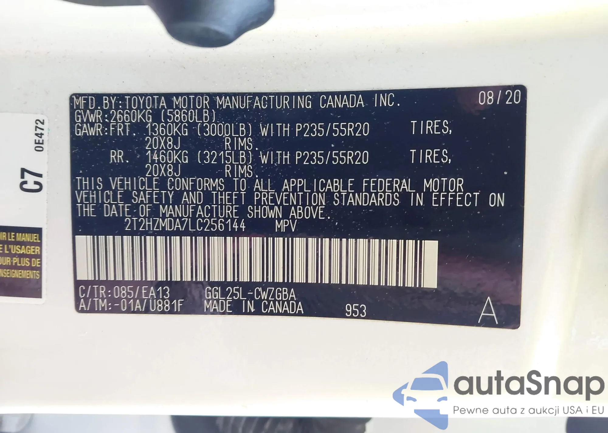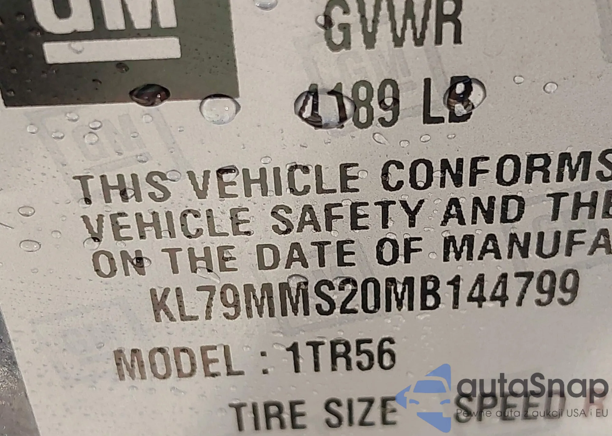 • VIN KL79MMS20MB144799