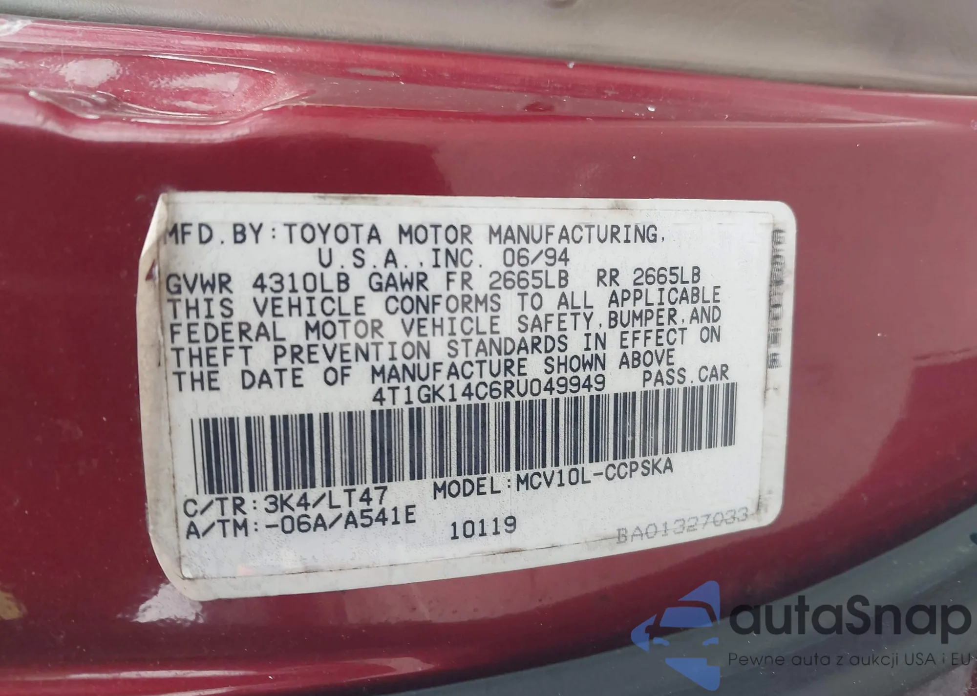 • VIN 4T1GK14C6RU049949