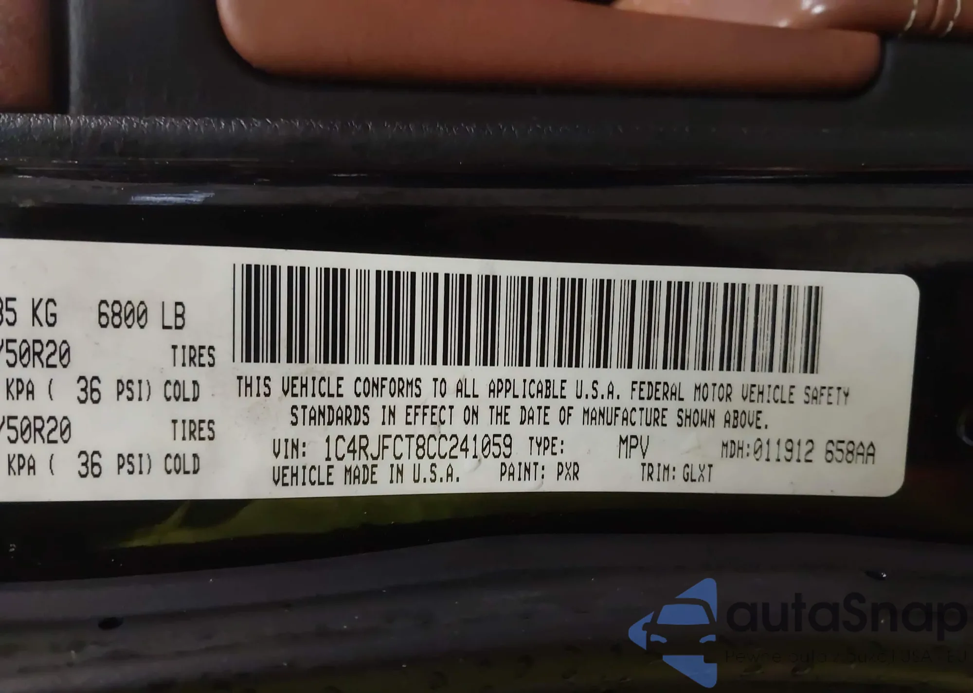 • VIN 1C4RJFCT8CC241059