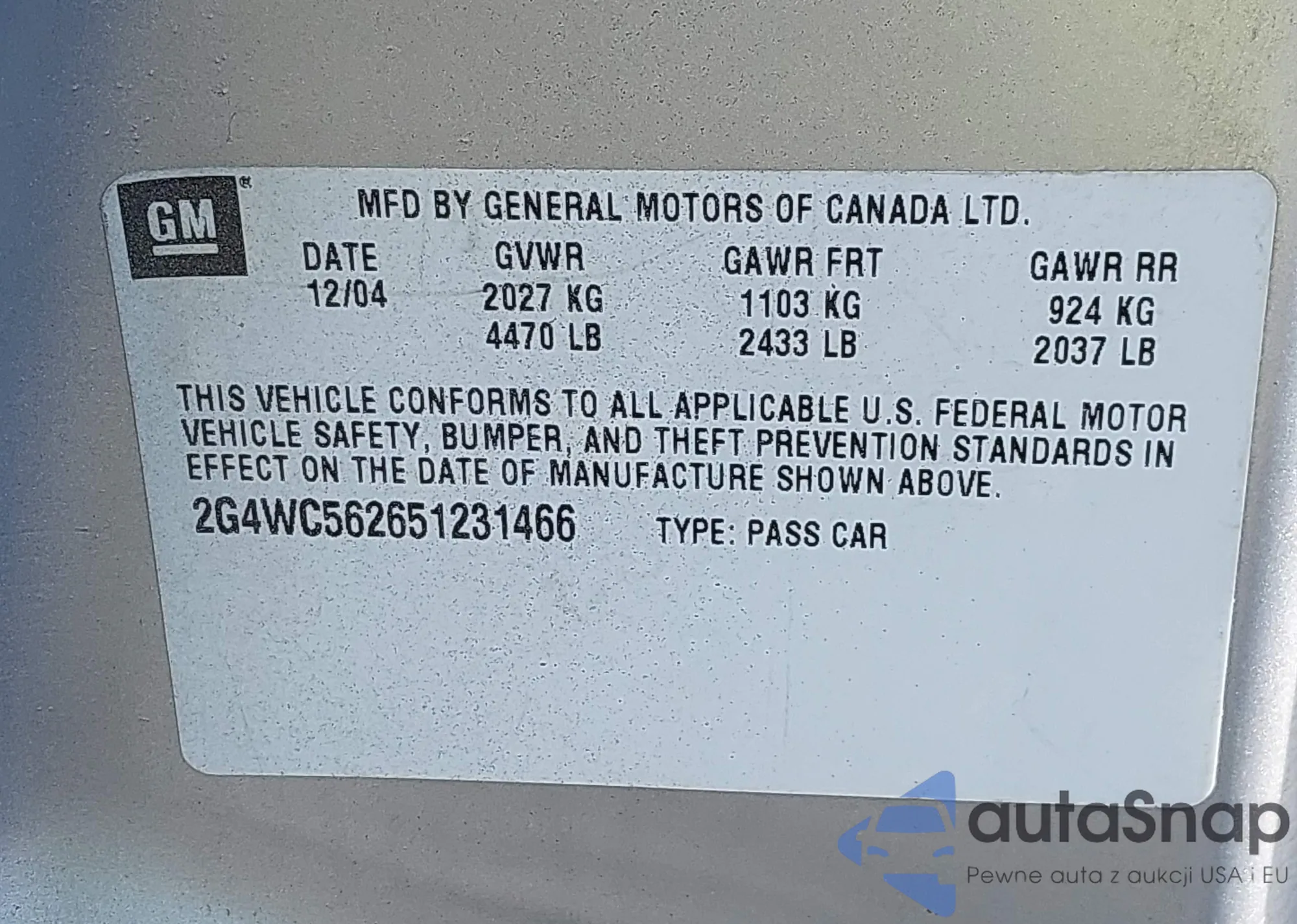 • VIN 2G4WC562651231466