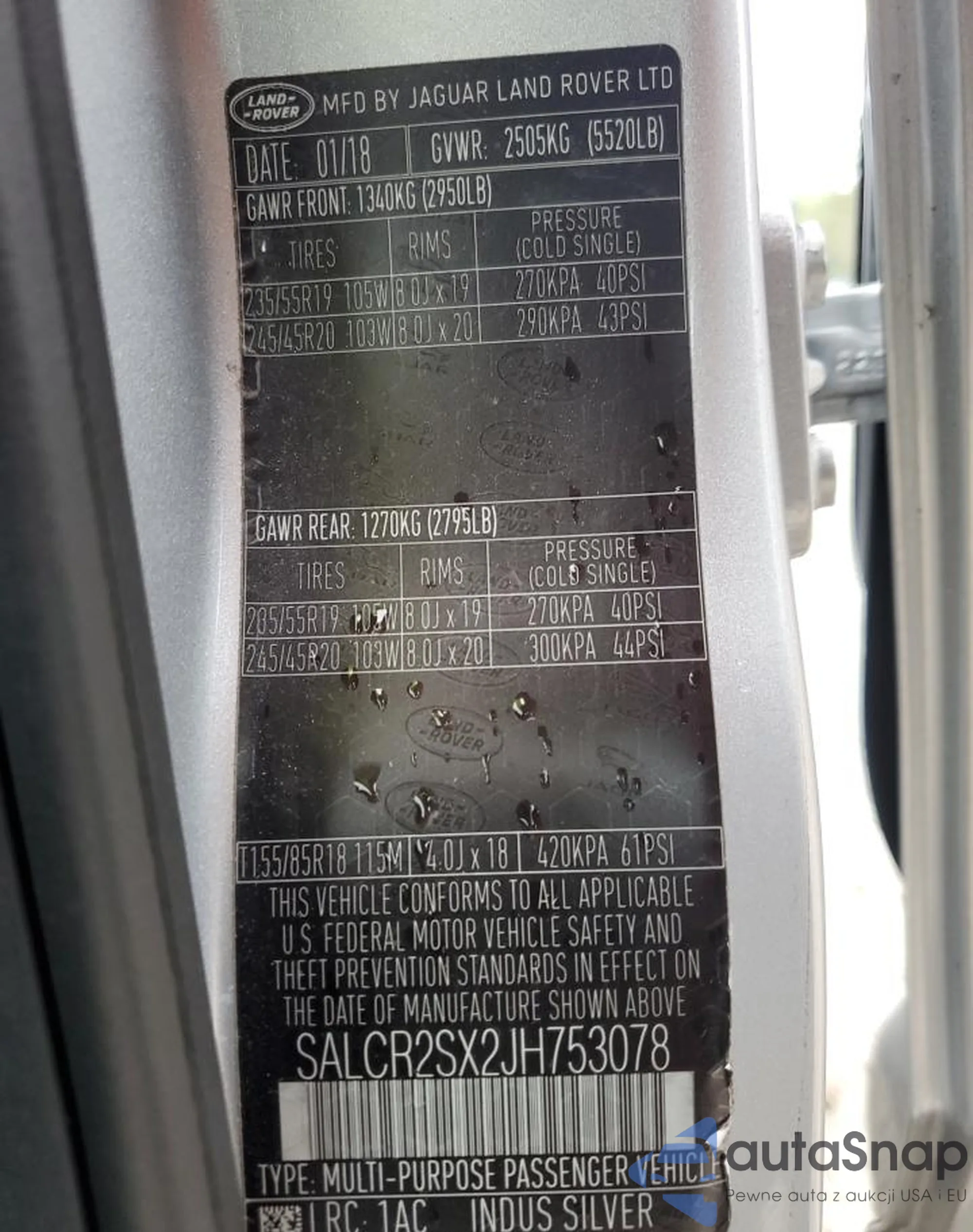 LOT: 84801105 VIN: WBSLX9C54FD160719