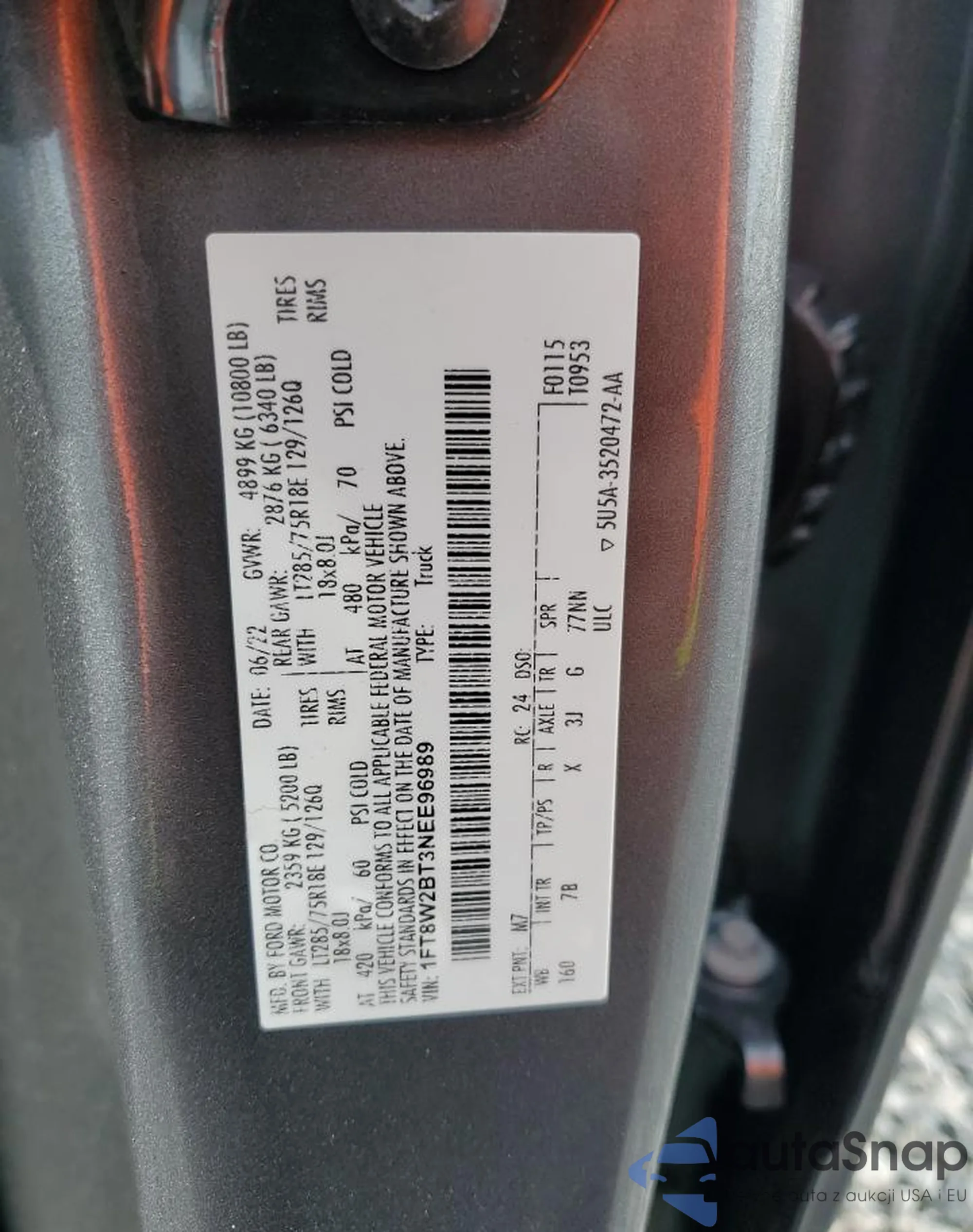• VIN 1FT8W2BT3NEE96989