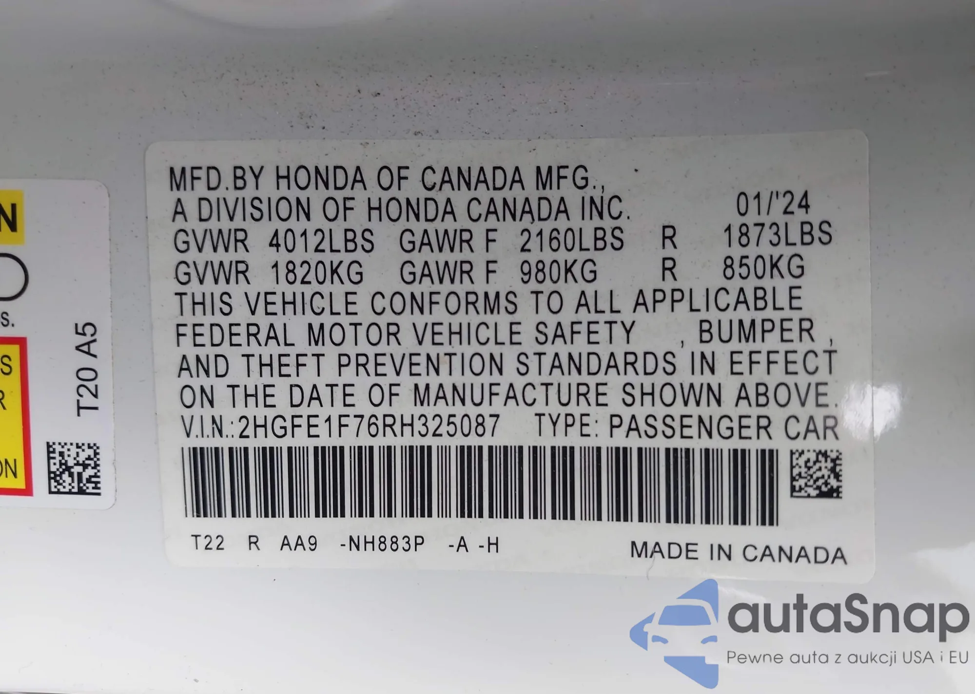 • VIN 1HGCR2F01GA021144