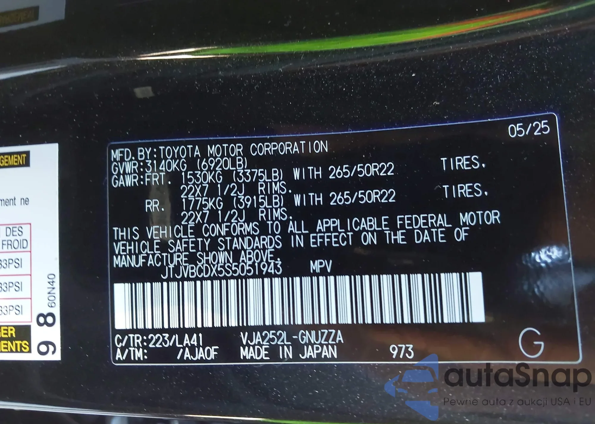 • VIN JTJVBCDX5S5051943