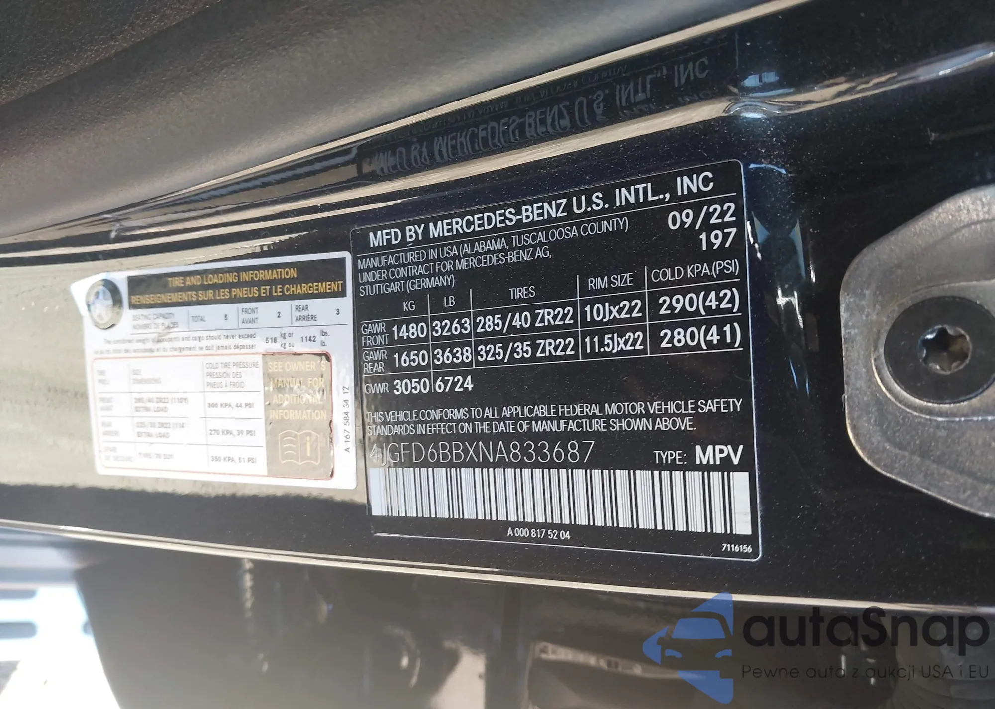 LOT: 43495891 VIN: 4JGFD6BBXNA833687
