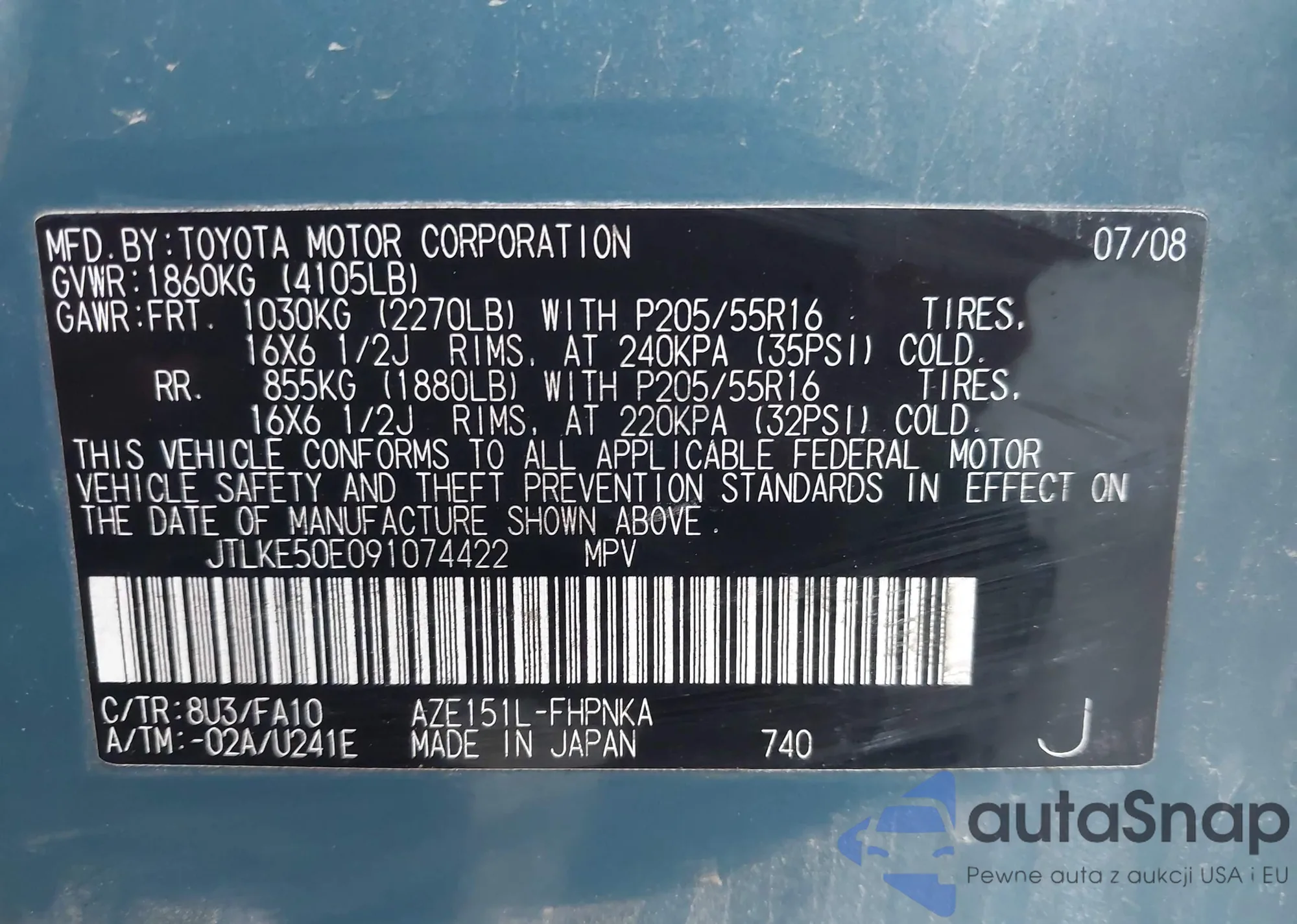 • VIN JTLKE50E091074422