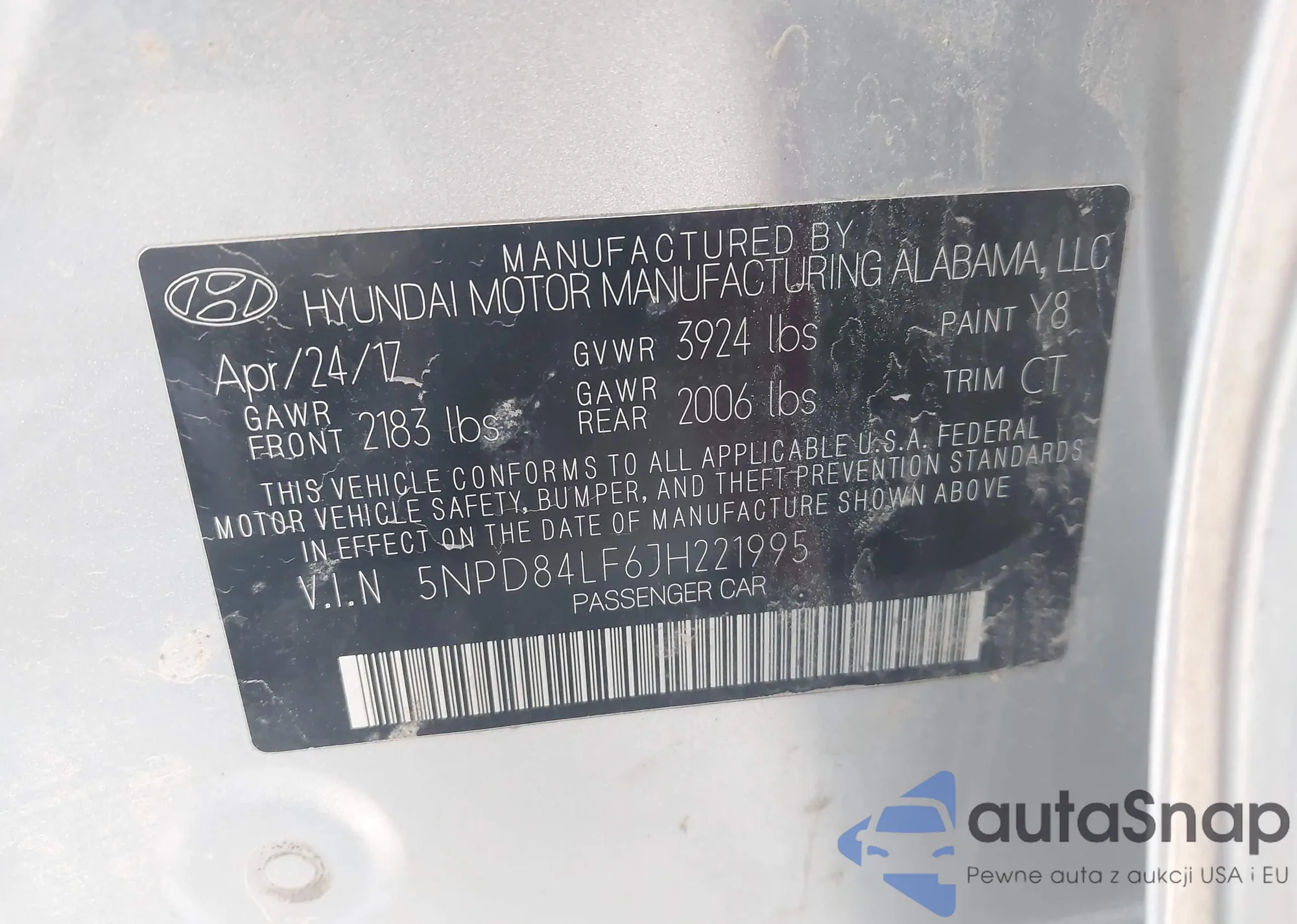 LOT: 43225606 VIN: 5NPD84LF6JH221995