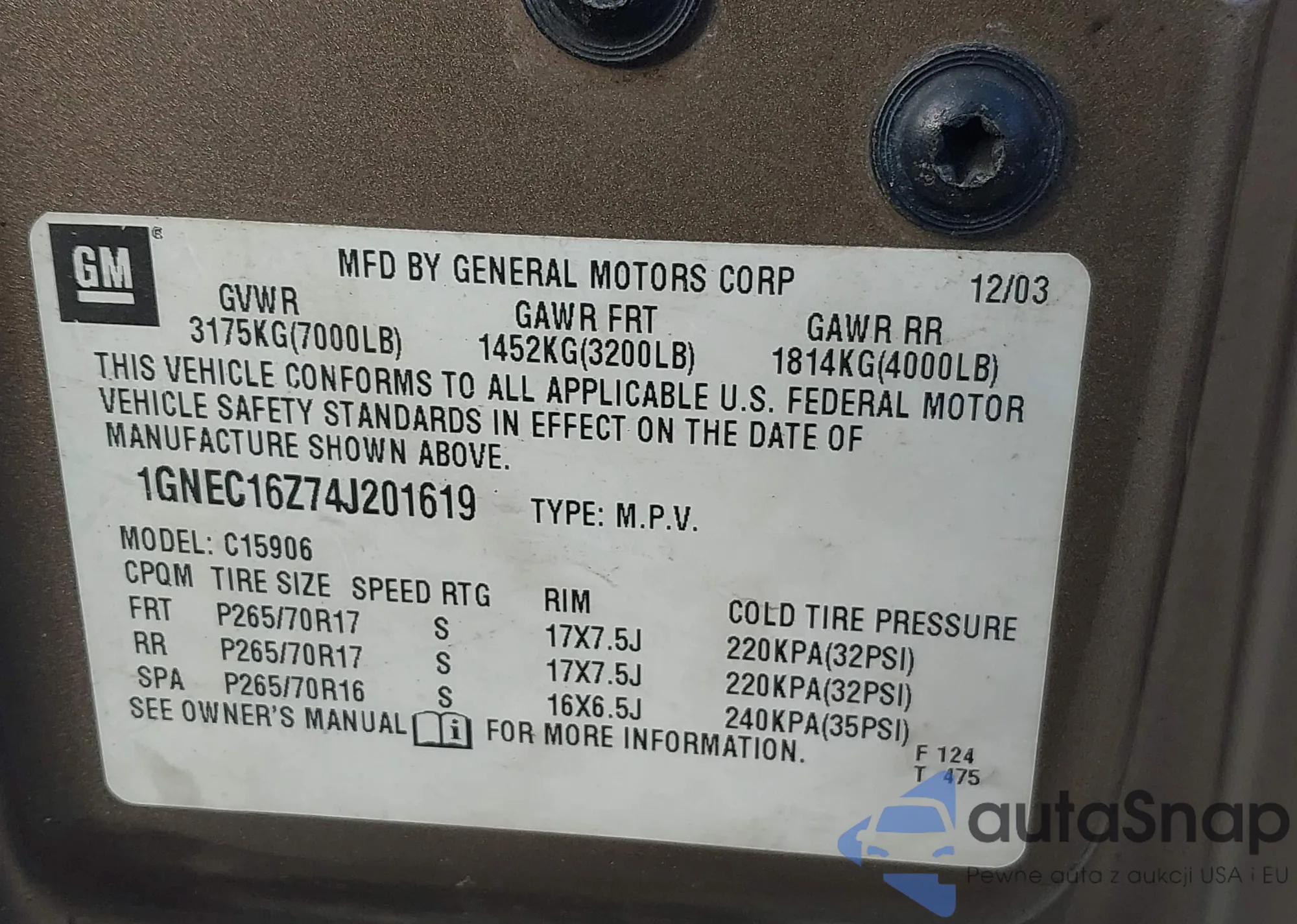 • VIN 3GTP1NEC5GG248259