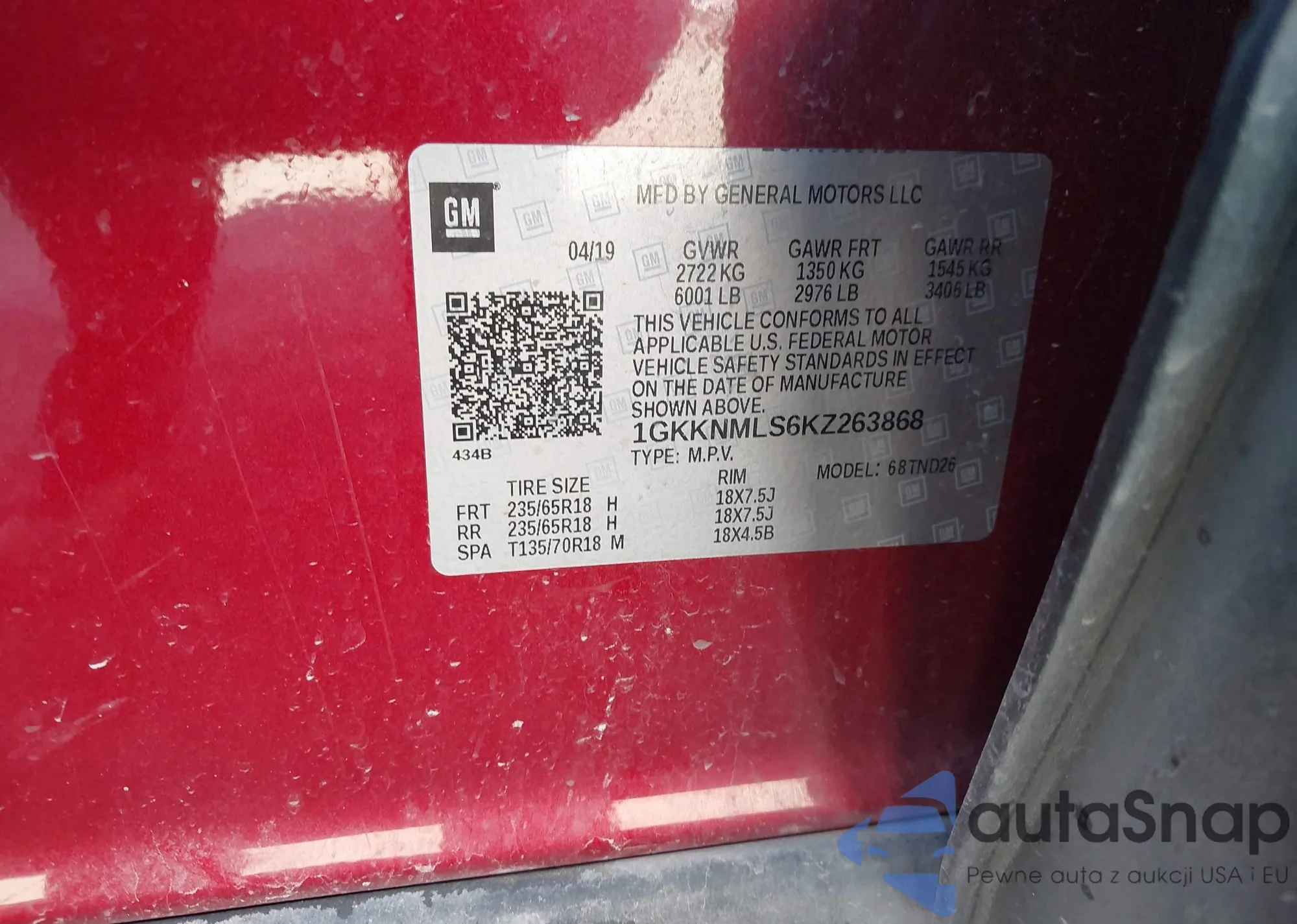 LOT: 41352651 VIN: 1GKKNMLS6KZ263868