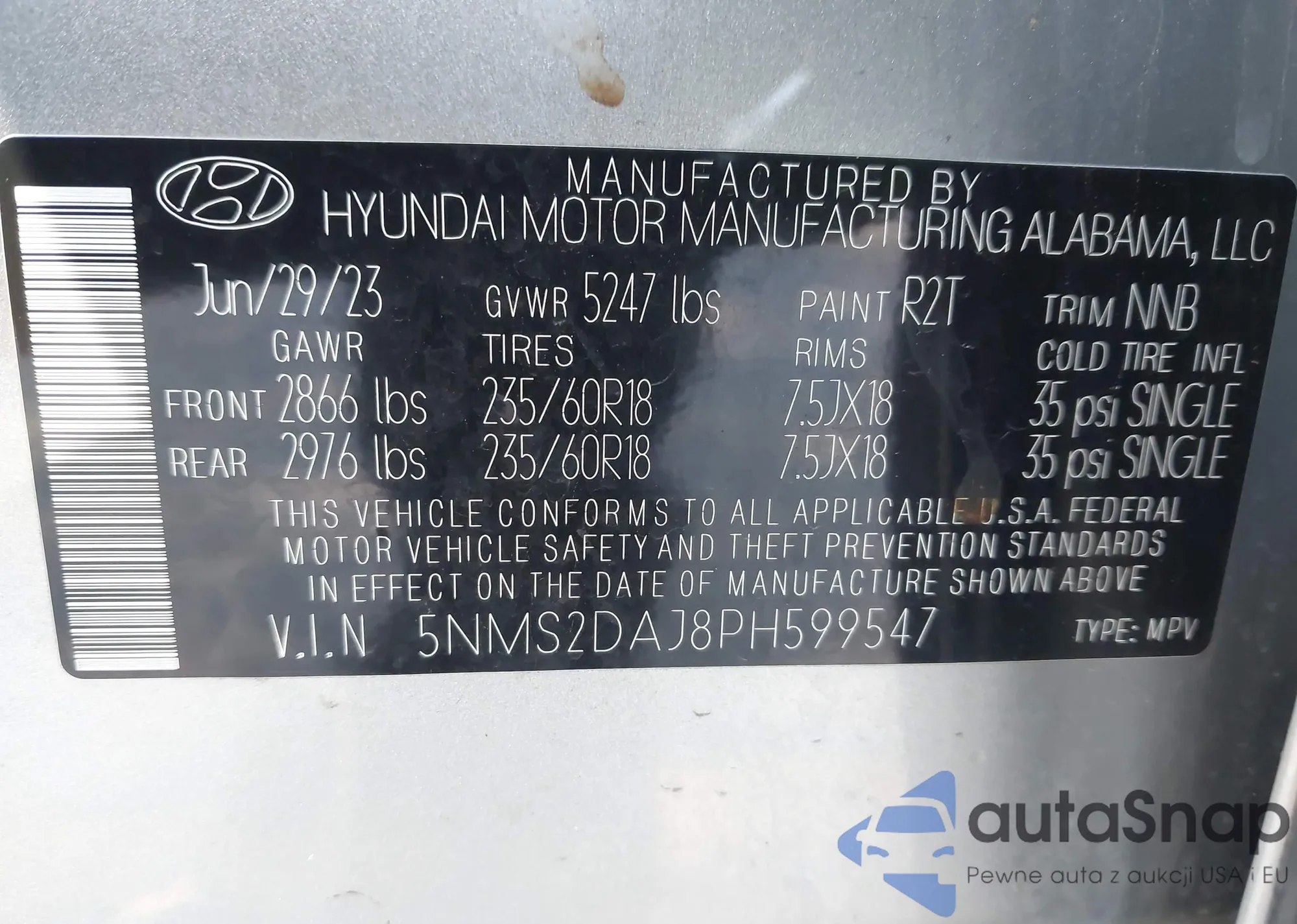 • VIN 5NMS2DAJ8PH599547