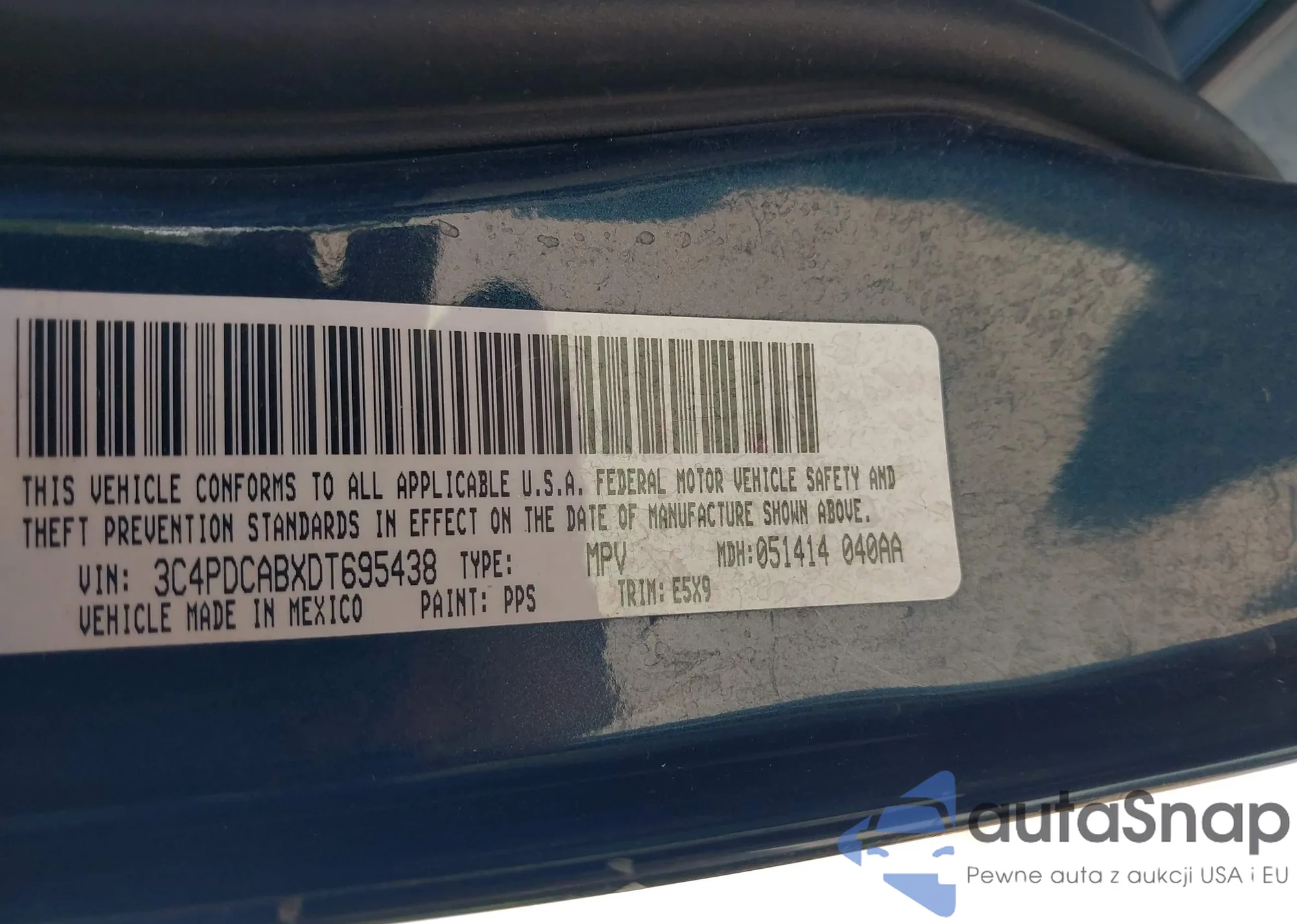 • VIN 3C4PDCABXDT695438