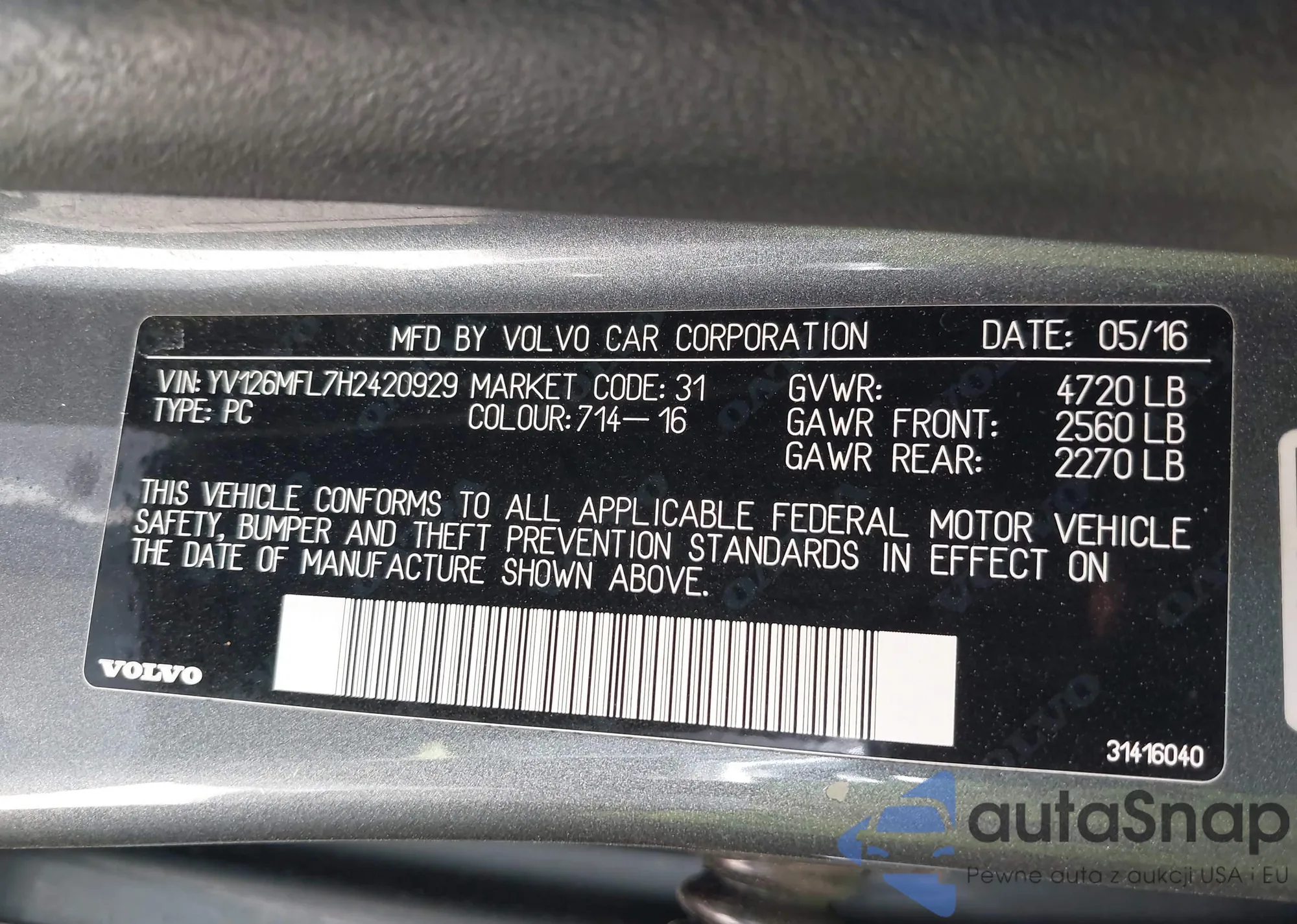 LOT: 43292833 VIN: YV126MFL7H2420929