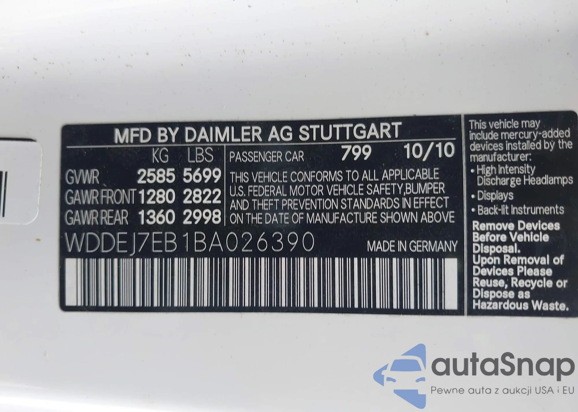 • VIN WDDEJ7EB1BA026390