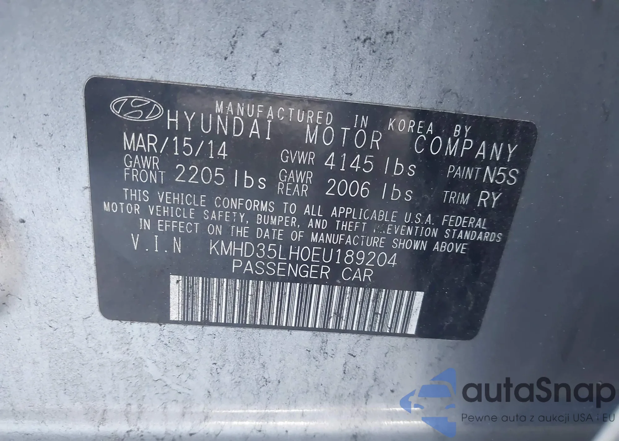 LOT: 43434660 VIN: WDDGF8AB4EA915789