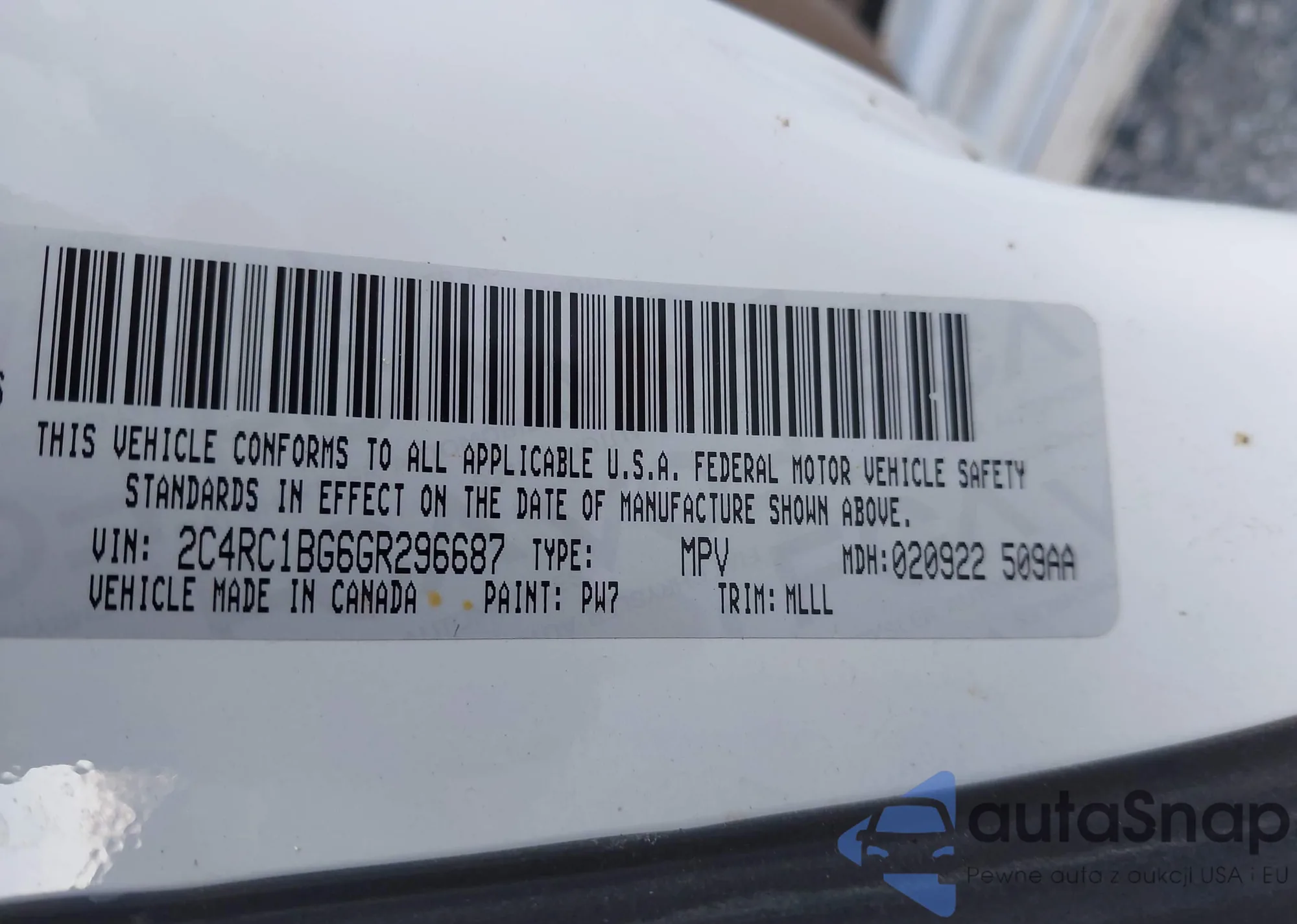 • VIN 2C4RC1BG6GR296687