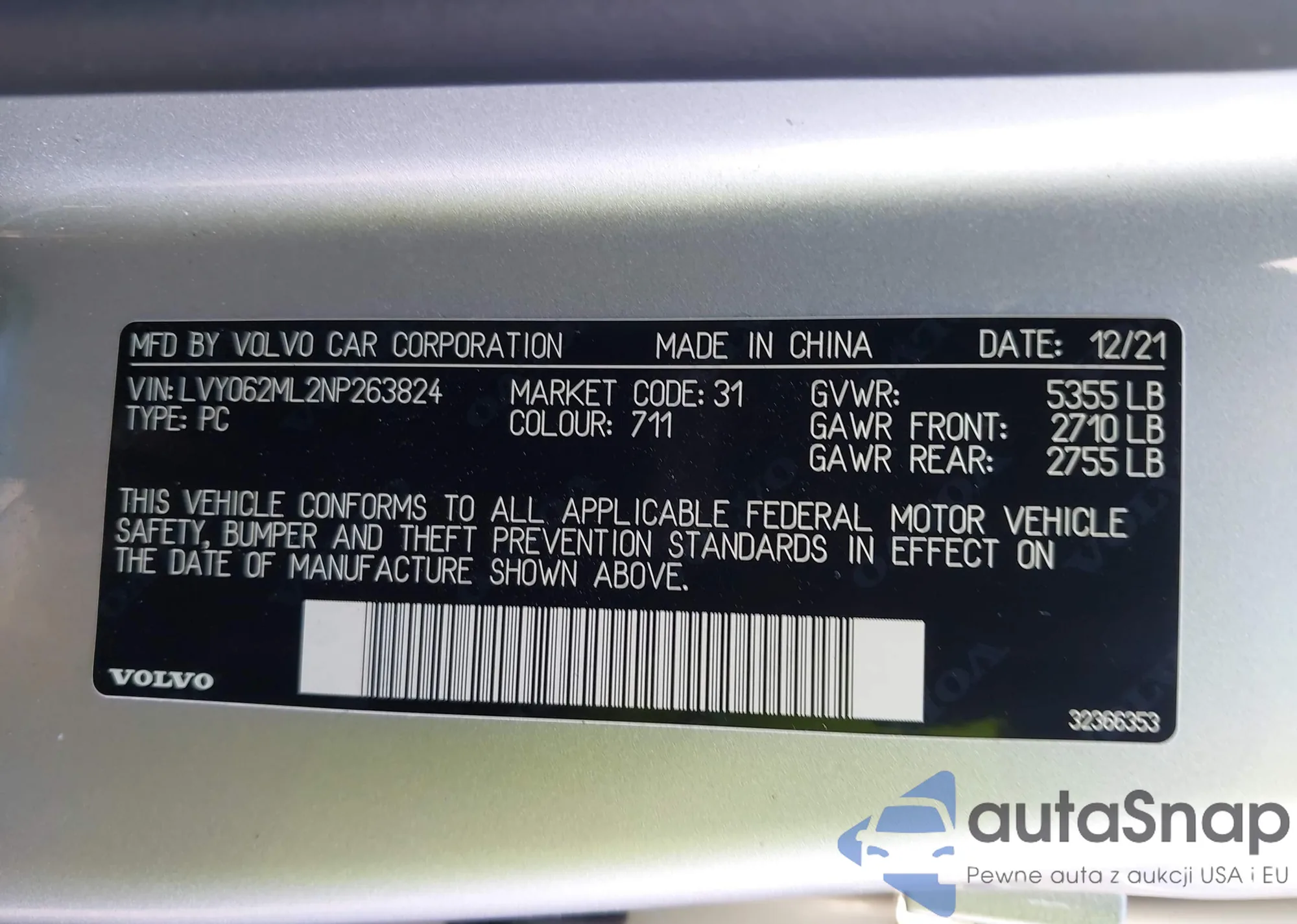 LOT: 43494869 VIN: LVY062ML2NP263824