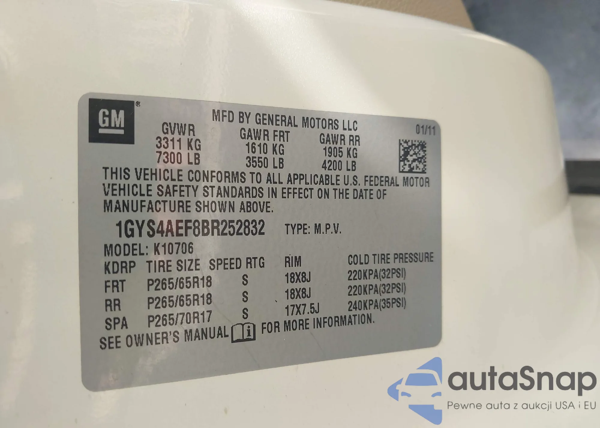 LOT: 42983534 VIN: 2GTEK13C381195037