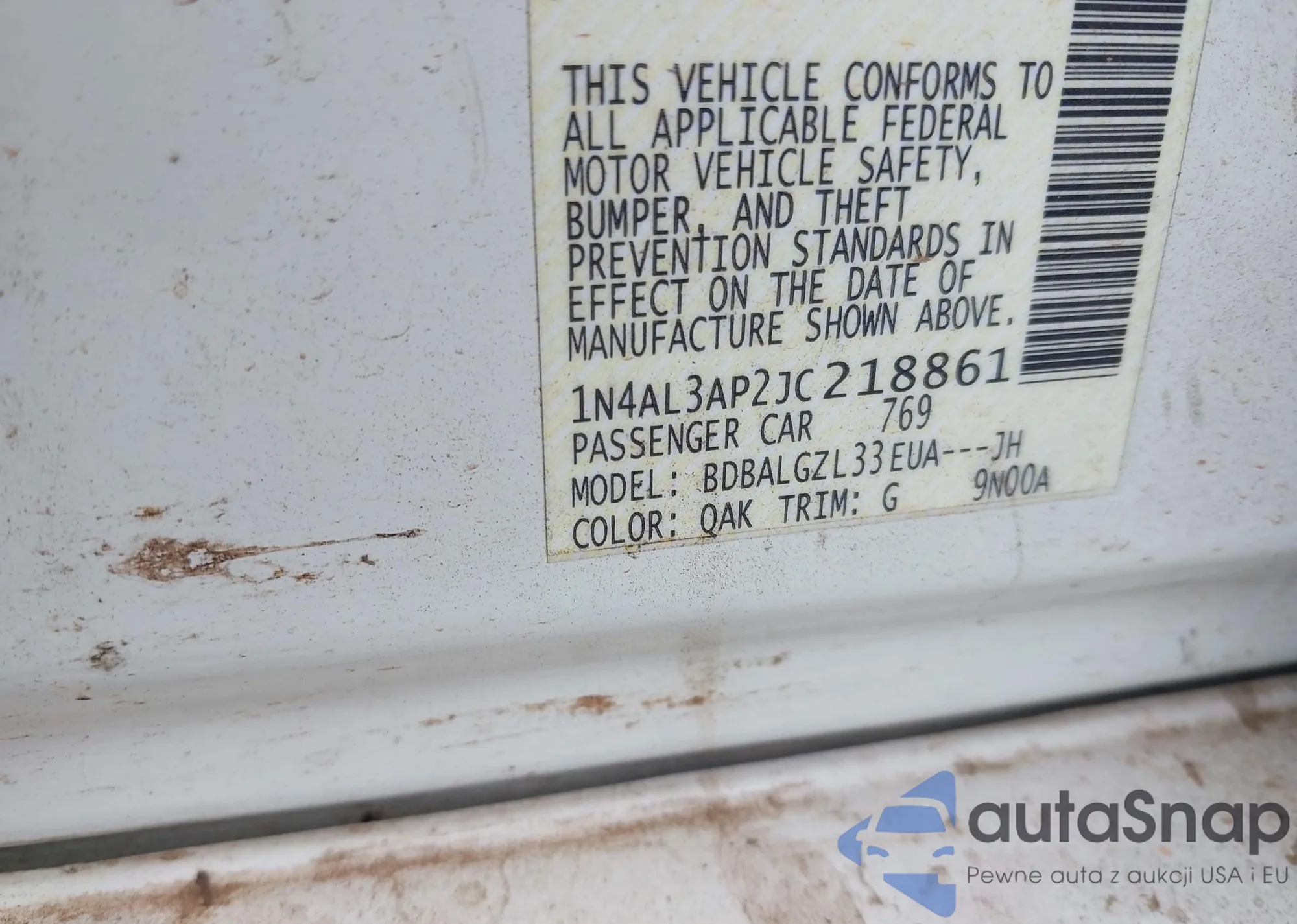 • VIN 1N4AL3AP2JC218861