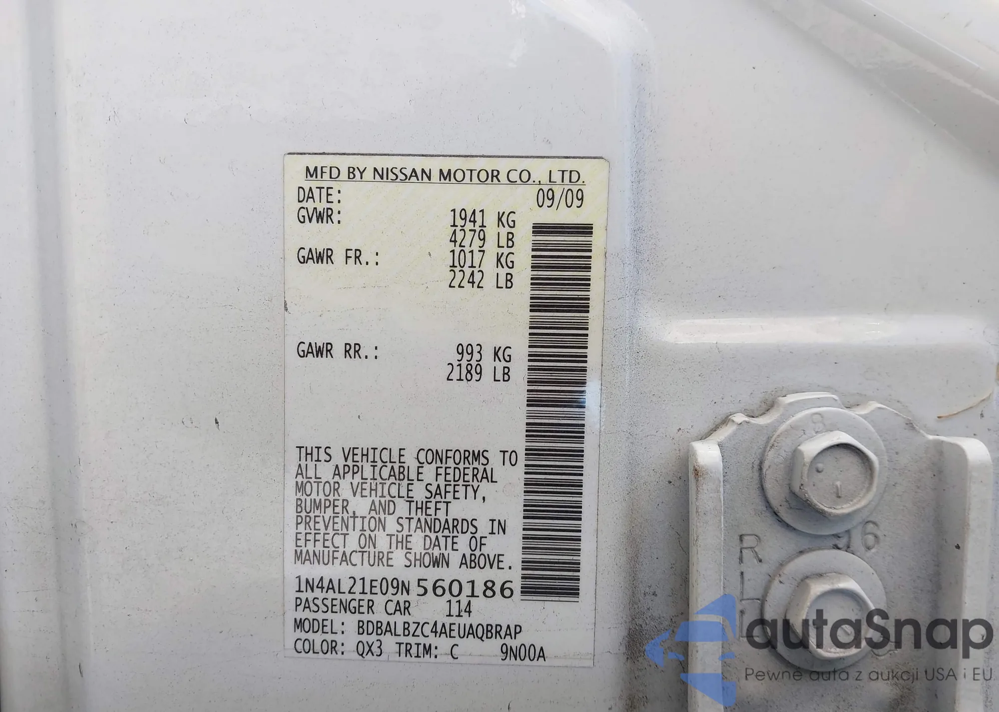 LOT: 43665619 VIN: 1N4AL21E09N560186