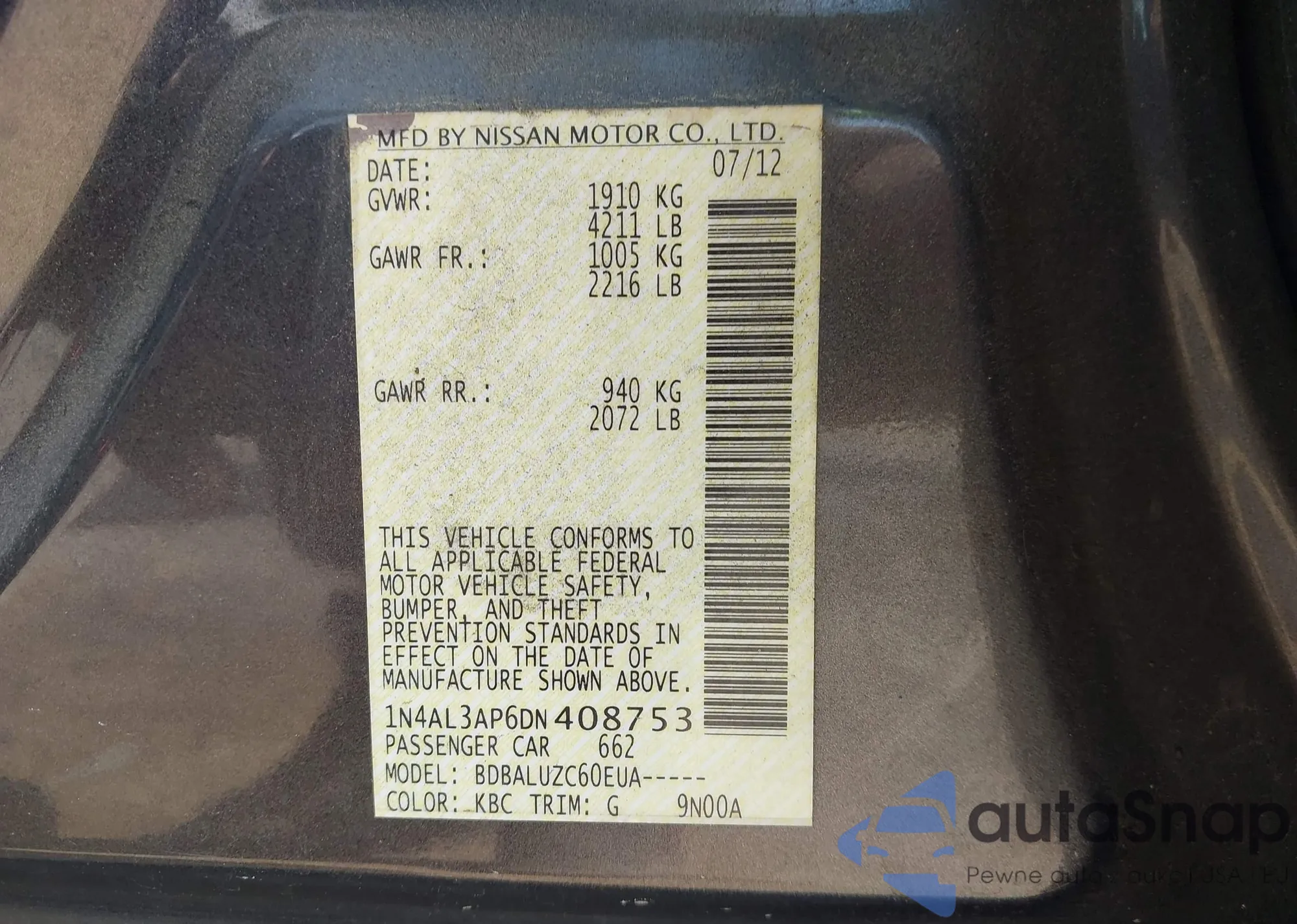 • VIN 1N6ED1EK0RN631192