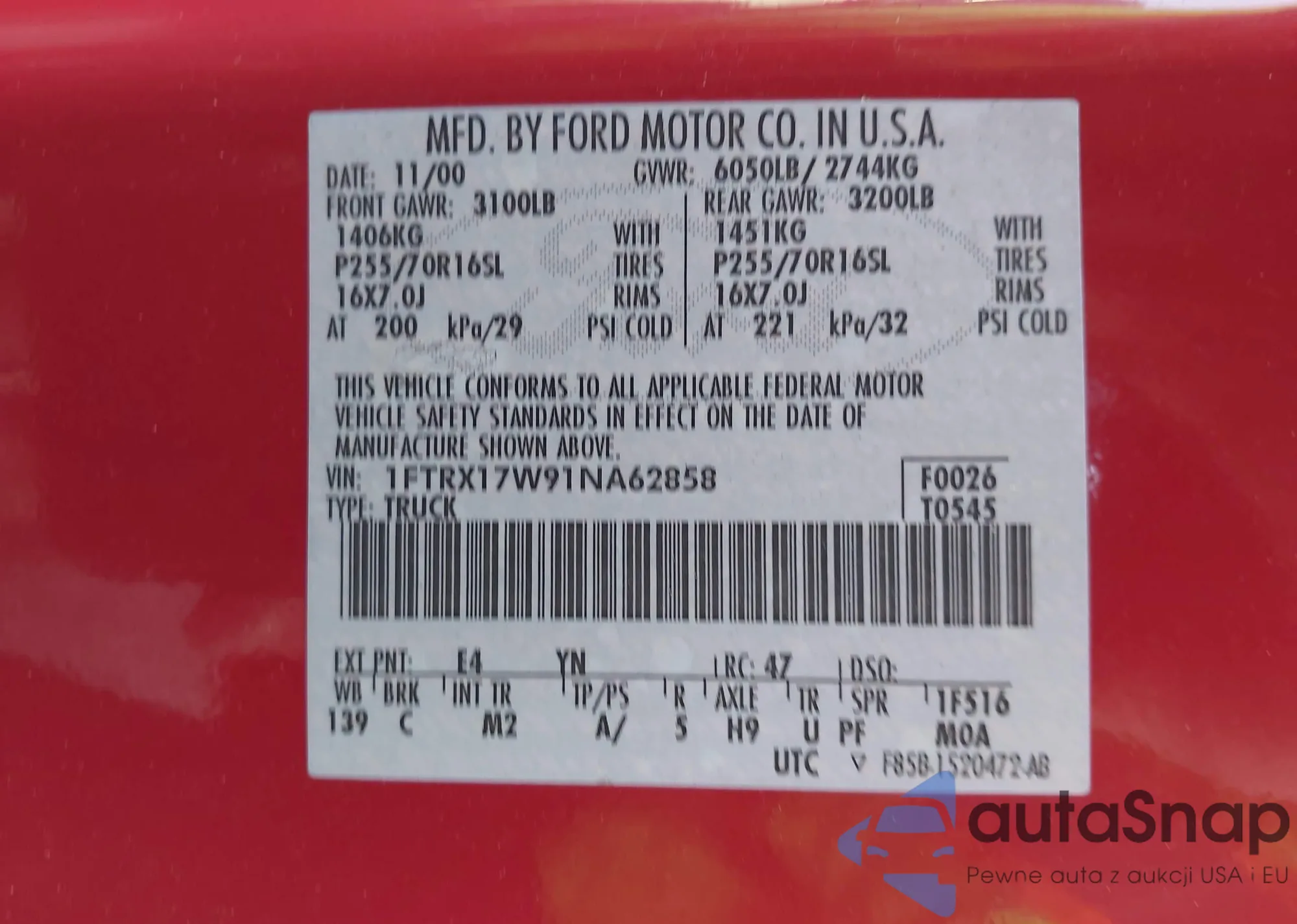 • VIN 1FTRX17W91NA62858