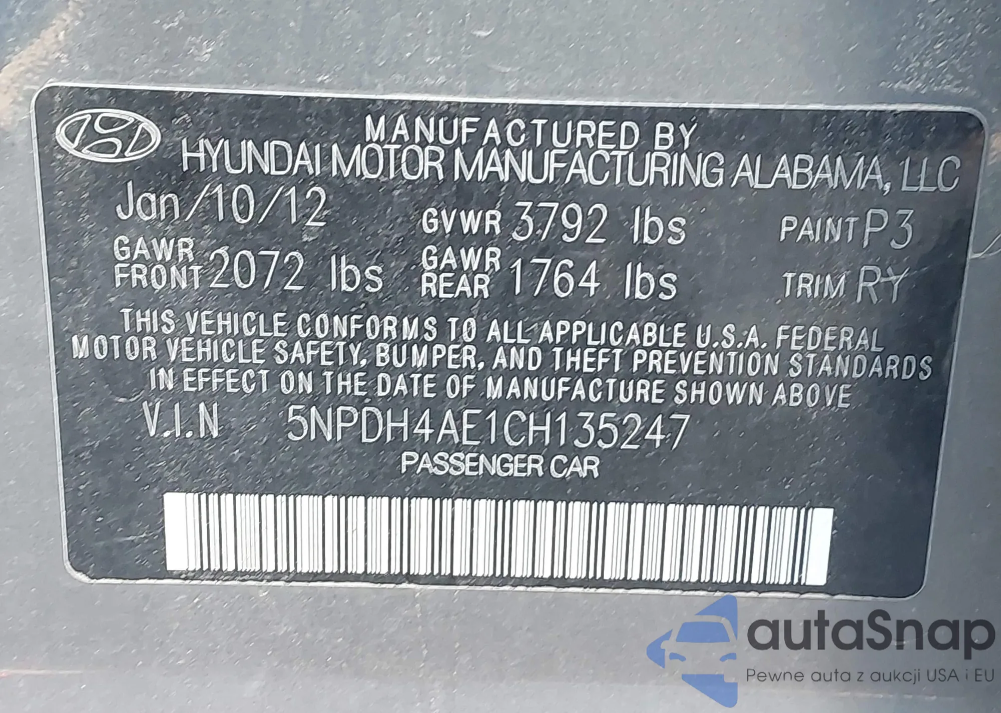 • VIN 5NPDH4AE1CH135247