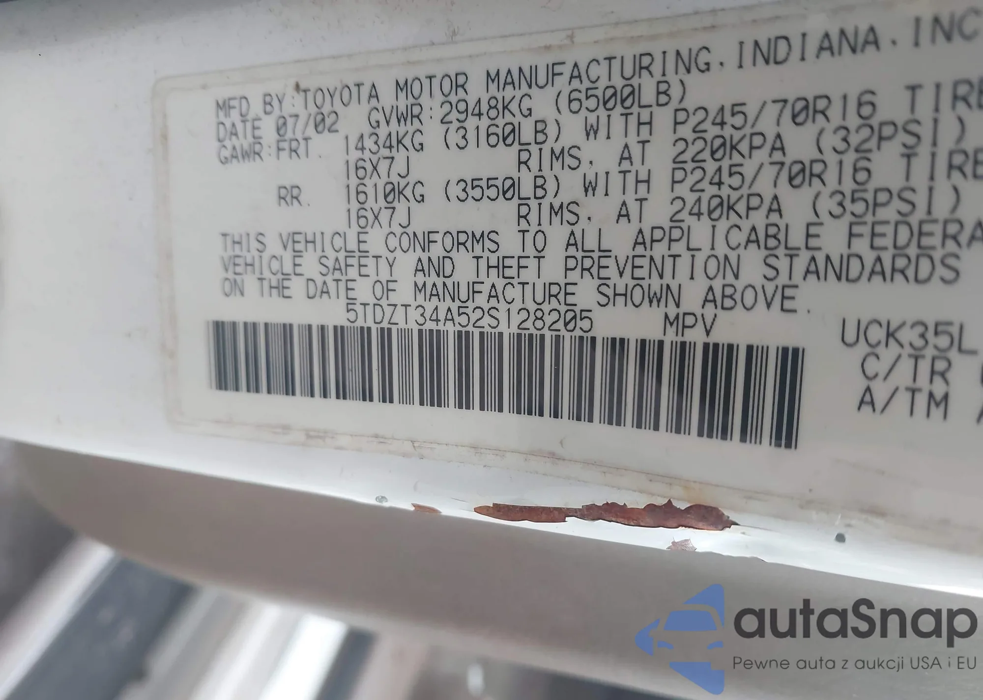 LOT: 43366085 VIN: 2T3BFREV2JW804104