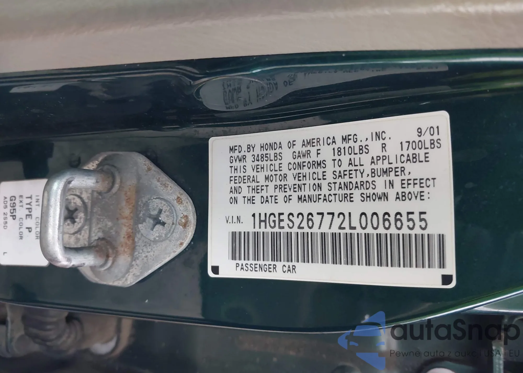 • VIN 1HGES26772L006655