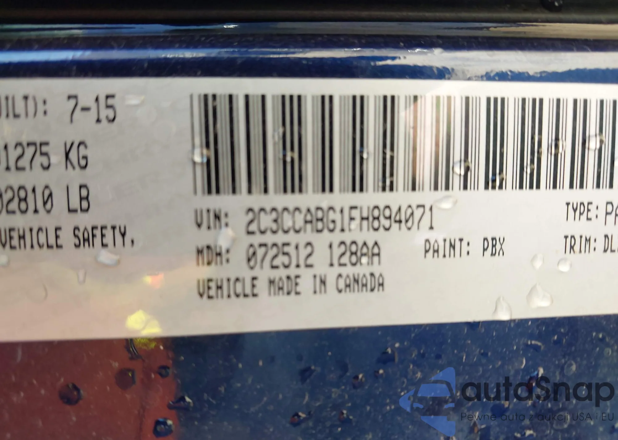 • VIN 2C3CCABG1FH894071