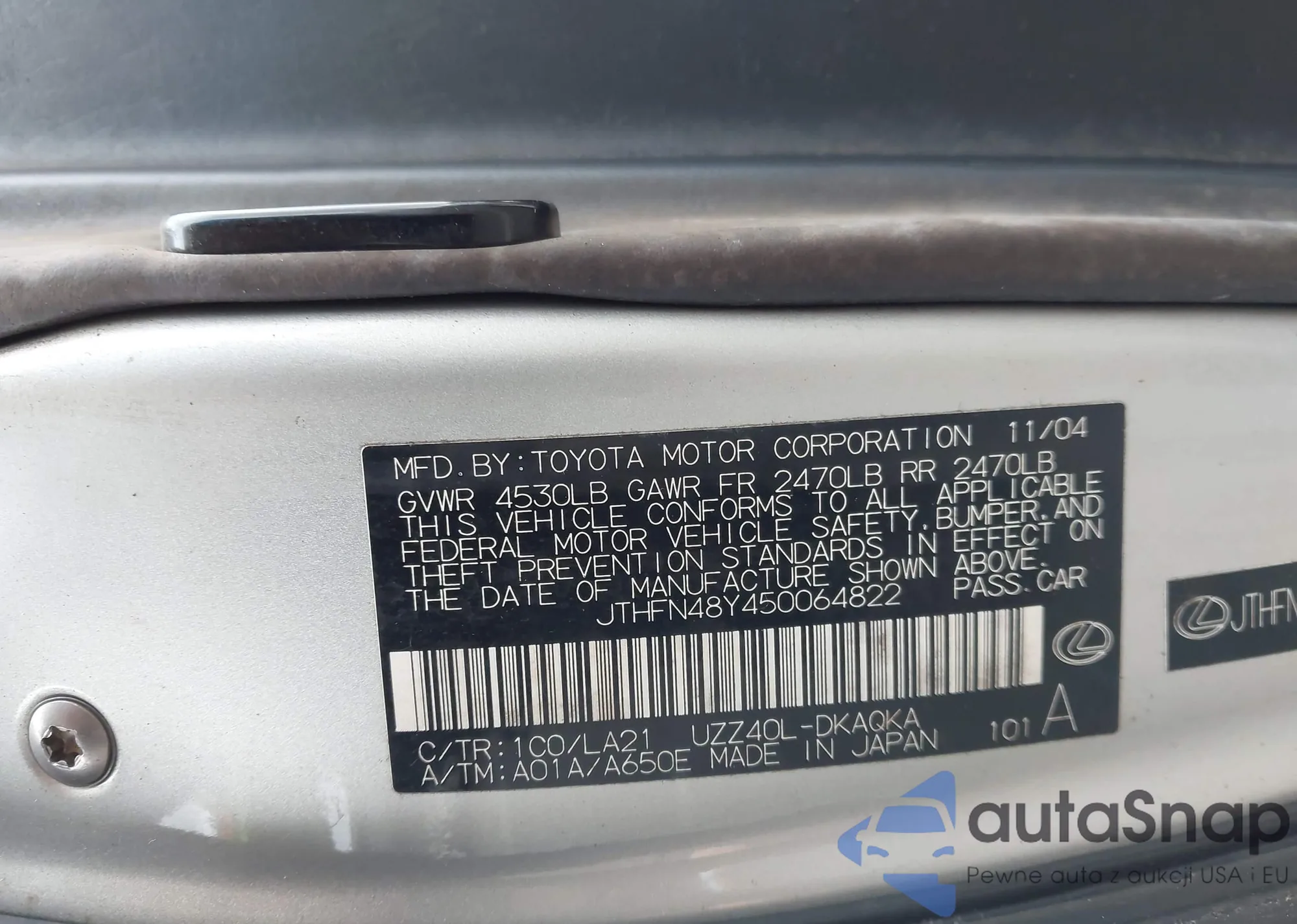 LOT: 43696508 VIN: JTHFN48Y450064822