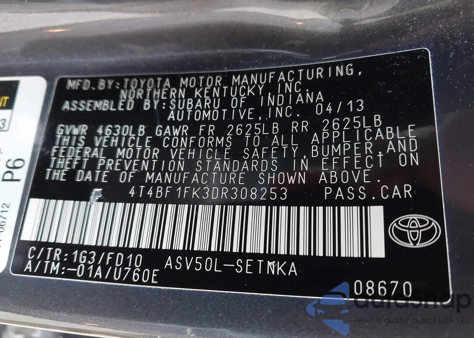 • VIN 2T1BU4EE2DC123416