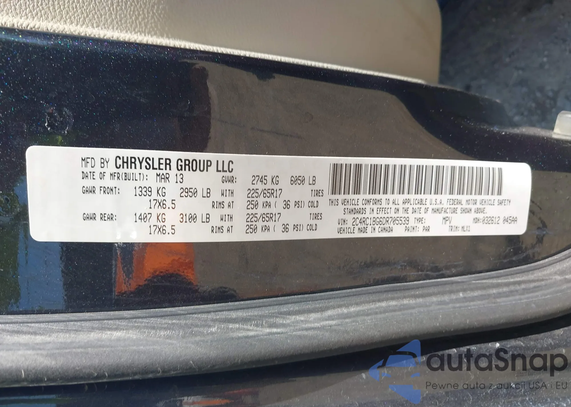 • VIN 2C4RC1BG6DR705539