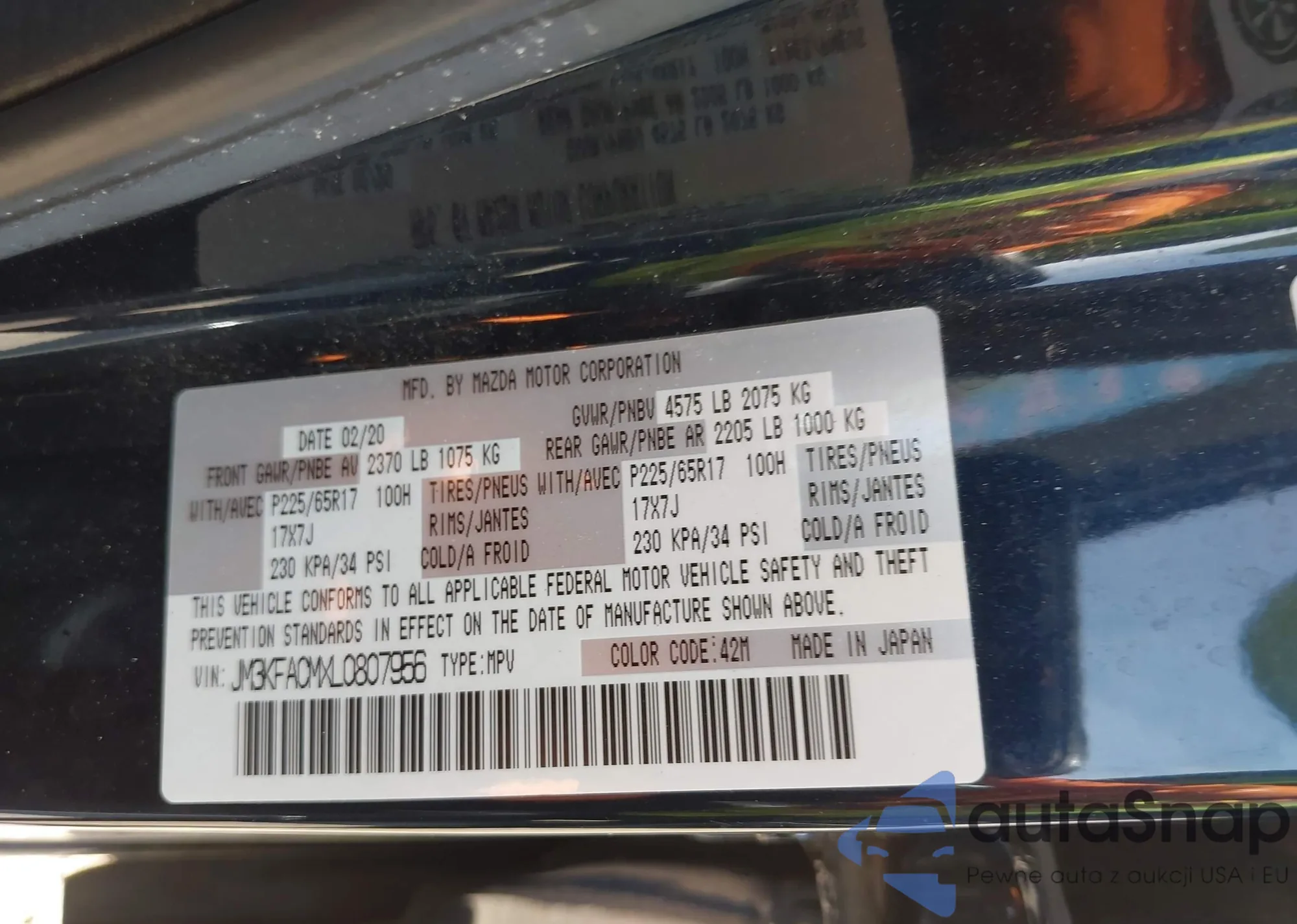 • VIN JM3KFACMXL0807956
