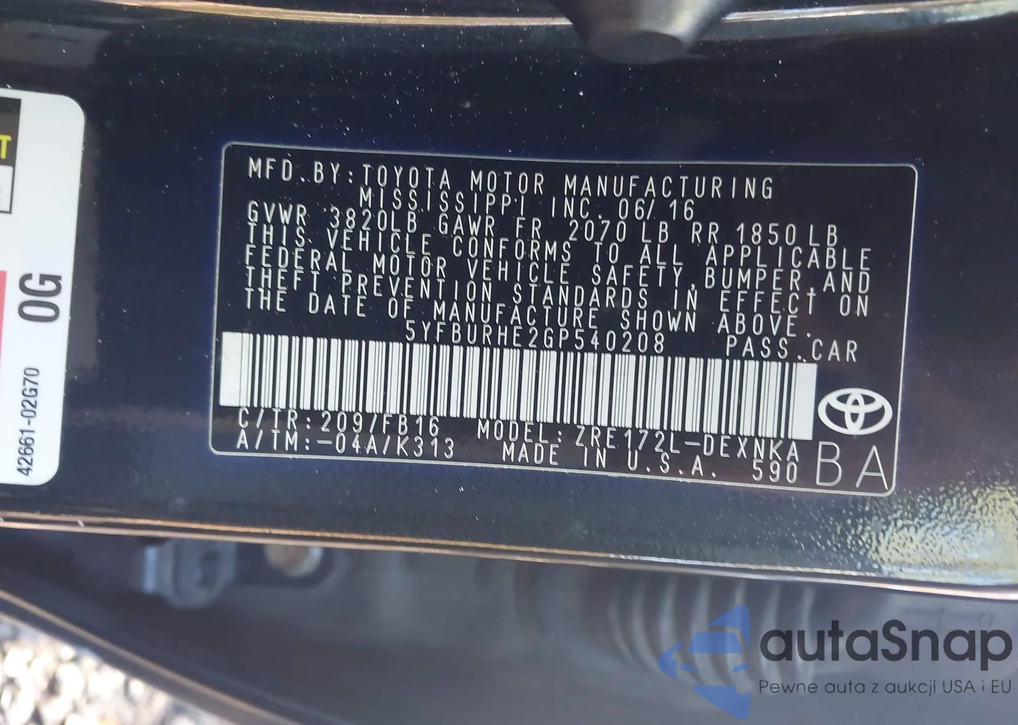 • VIN 4T1B11HK9KU204028