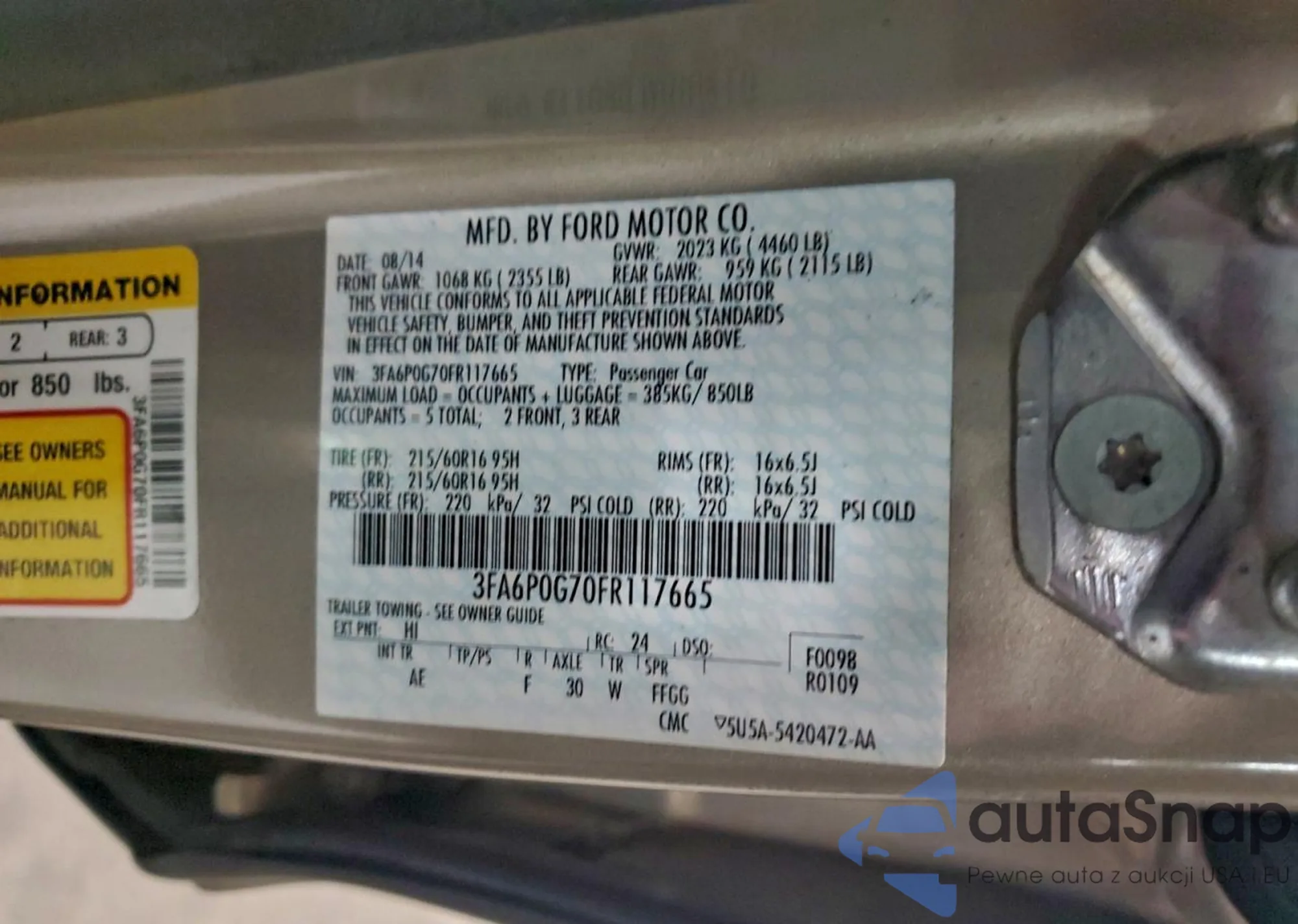 LOT: 94160835 VIN: 3FA6P0G70FR117665